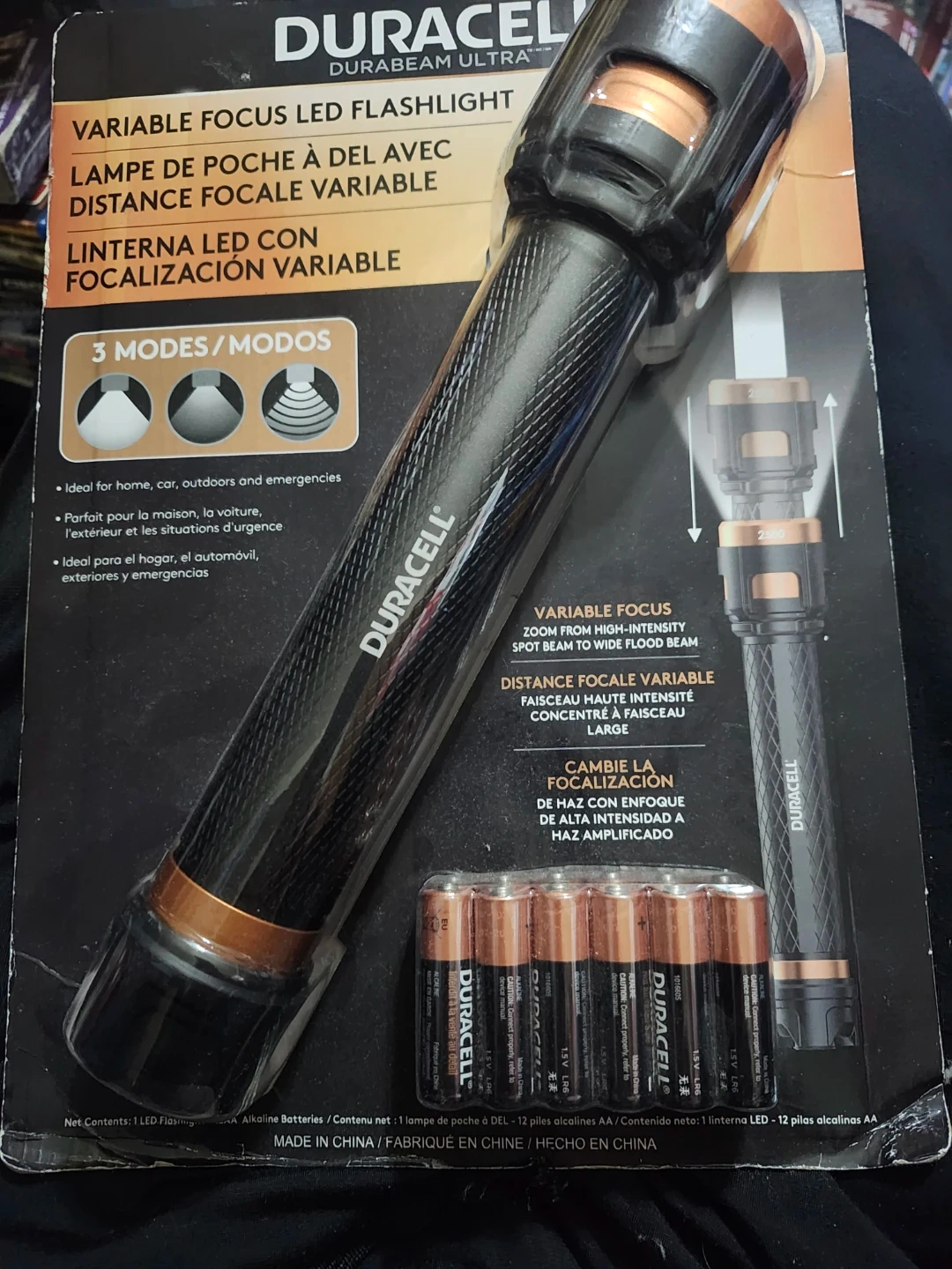 This Duracell Durabeam Ultra LED flashlight offers variable focus for a zoomable beam. It features 3 modes and is ideal for home, car, outdoors, and emergencies. Includes 12 Duracell AA alkaline batteries.