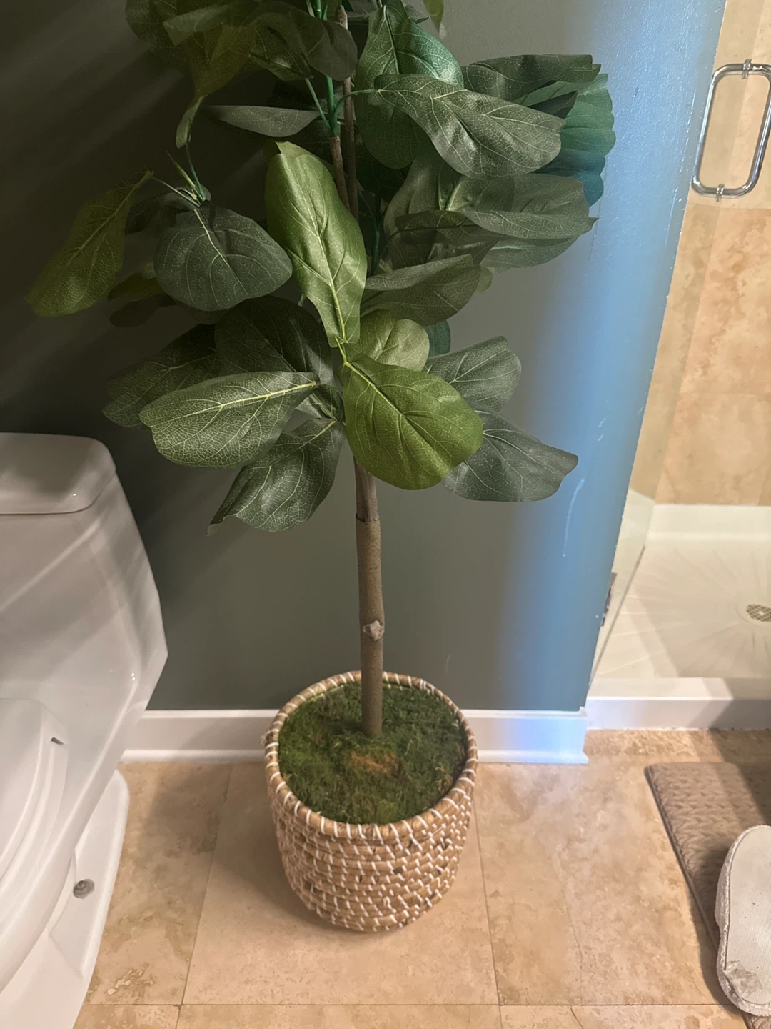 60Add a touch of greenery to your space with this faux fiddle leaf fig tree! It comes in a cute woven basket, perfect for any room in your home 4 feet tall