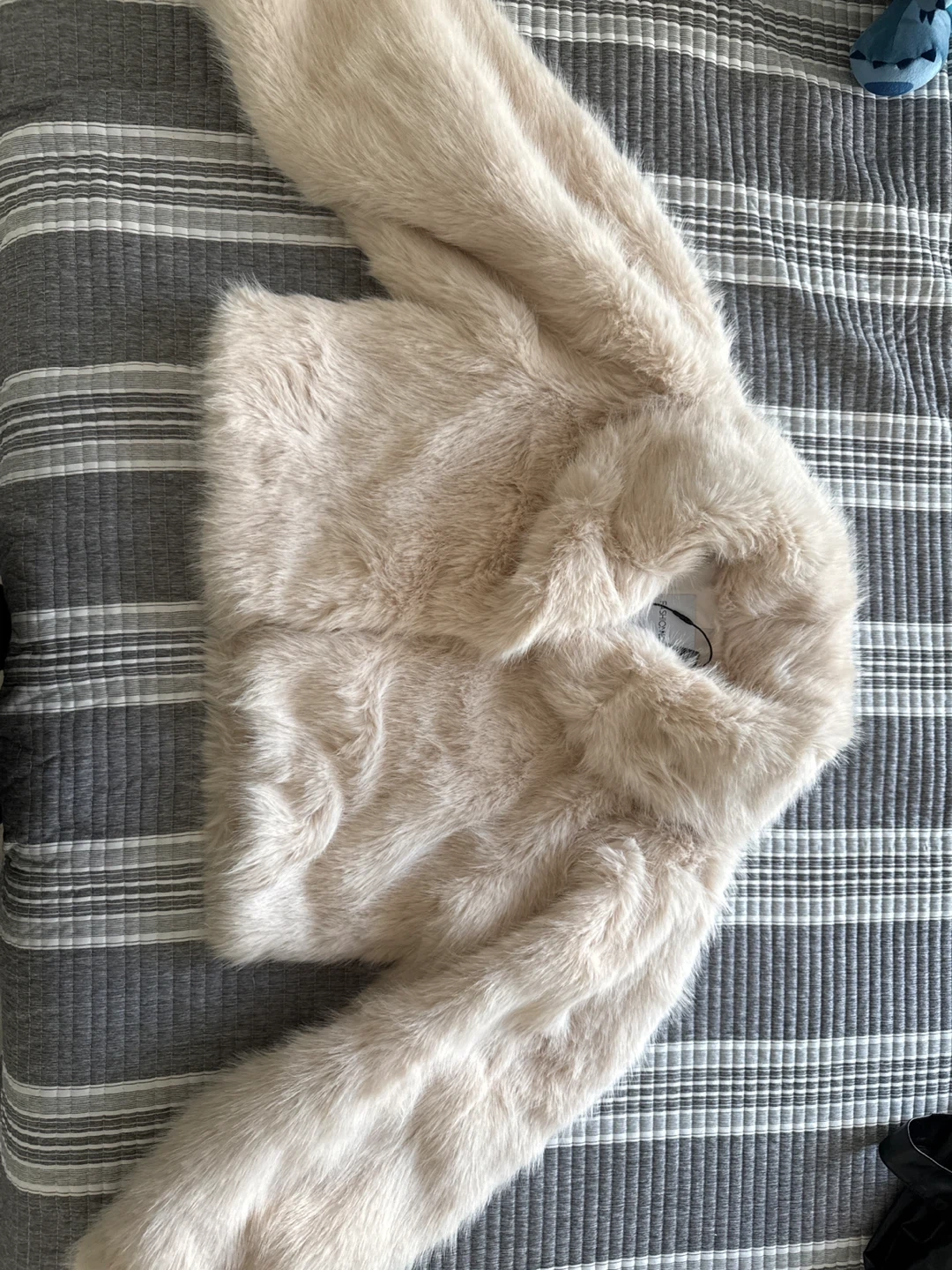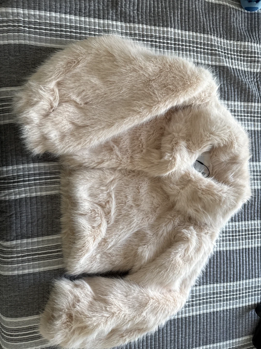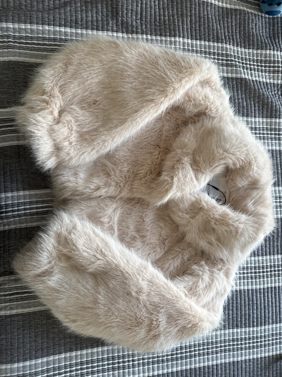 60Selling a cozy faux fur jacket! It's a beautiful beige color and in great condition. Perfect for adding a touch of warmth and style to any outfit. New with label.