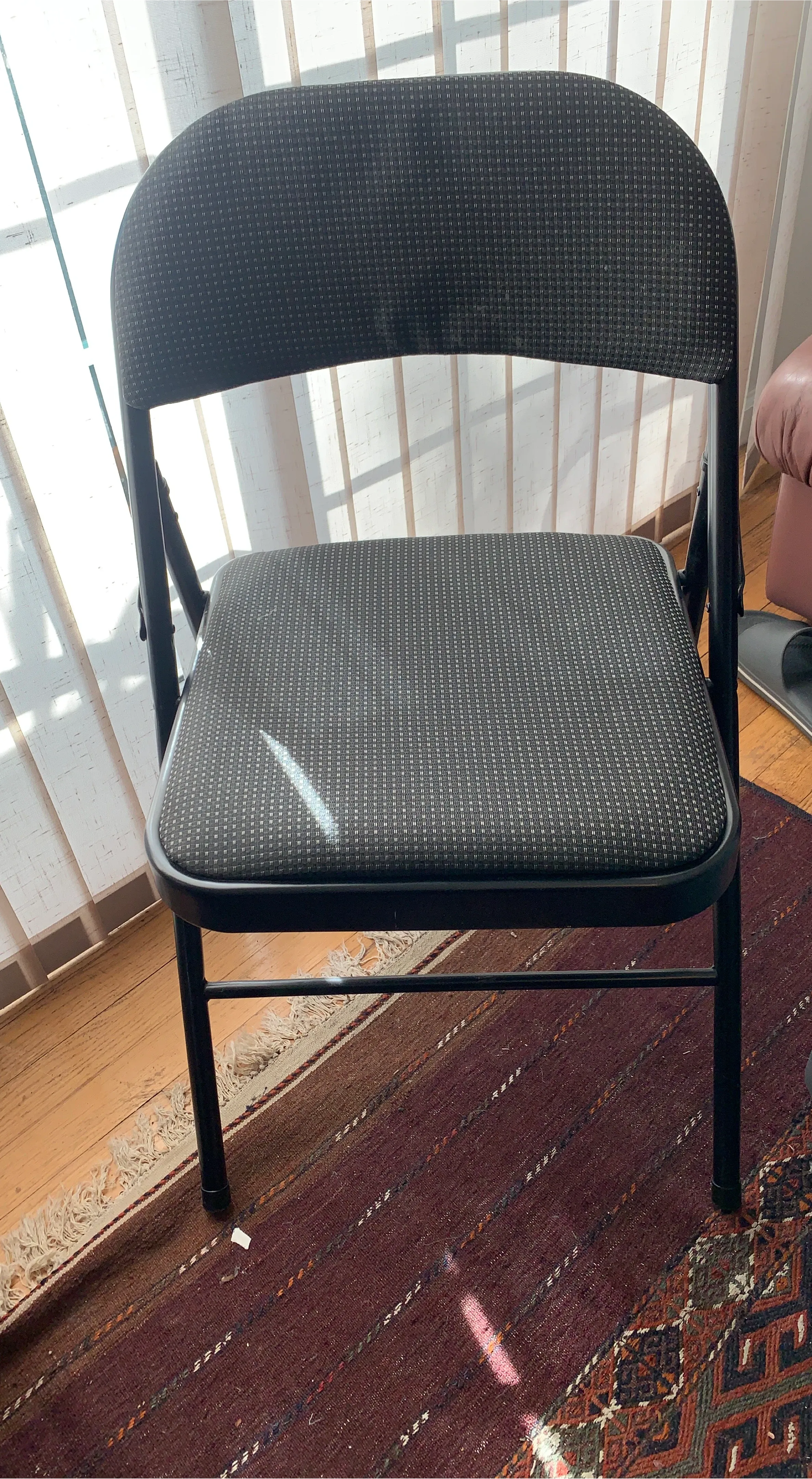 Selling a folding chair. It's black and in good condition. Great for extra seating when you have guests. In Asbury Park, NJ