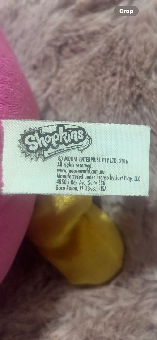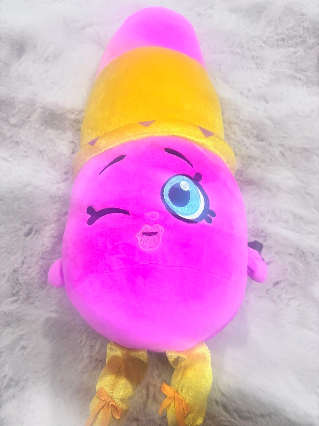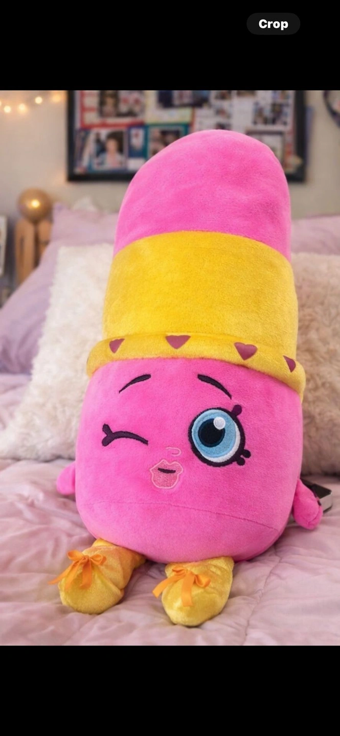 Super cute Shopkins “Lippy Lips” jumbo plush, approximately 18 inches tall, in excellent, like-new condition. This plush is clean, bright, and well cared for, with no stains, tears, or flaws. Features a fun winking face, vibrant pink and gold colors, heart details, and soft plush legs with bow accents. Officially licensed Shopkins / Moose Enterprise plush — perfect for collectors, kids, or room décor. Authentic licensed plush. Large 18” size – great statement piece. Ultra-soft and cuddly. Perfect for gifting (birthdays, Valentine’s Day, holidays). A super adorable and hard-to-miss plush that looks amazing on a bed, chair, or shelf.