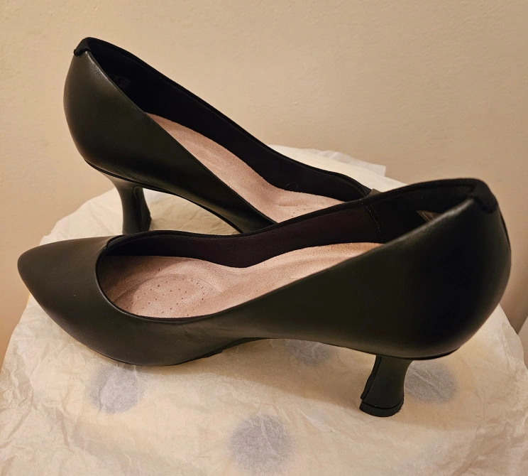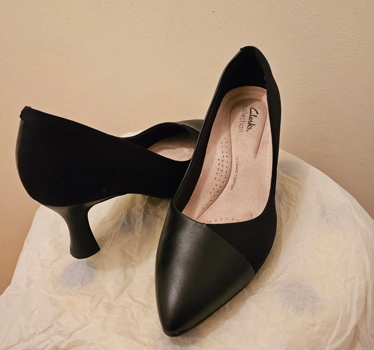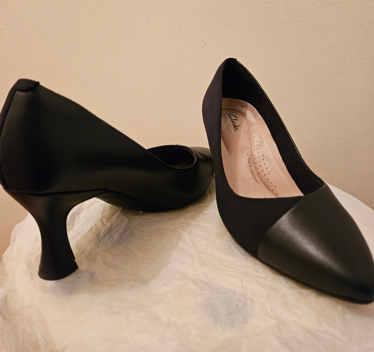 Una combinación de texturas y tacones bien formados brindan un estilo moderno a los zapatos de tacón cómodos y acolchados Kataleyna Rose de Clarks.