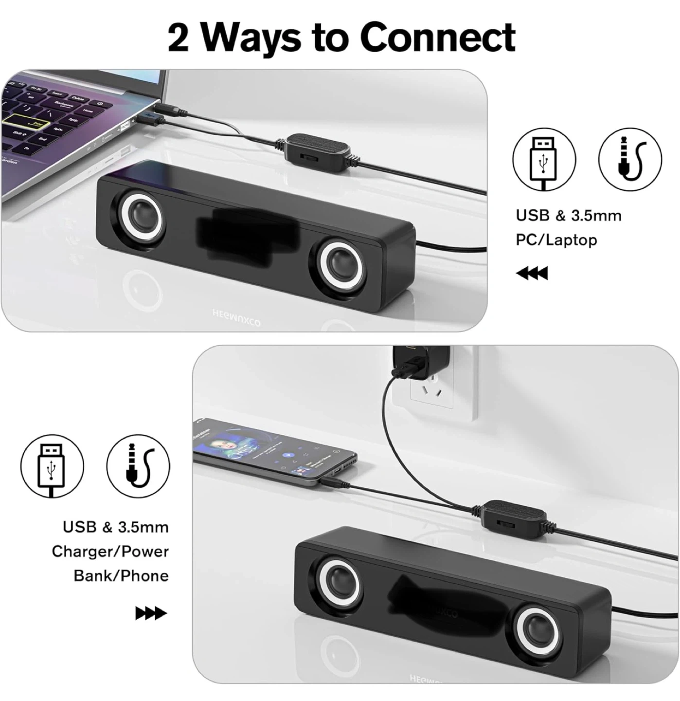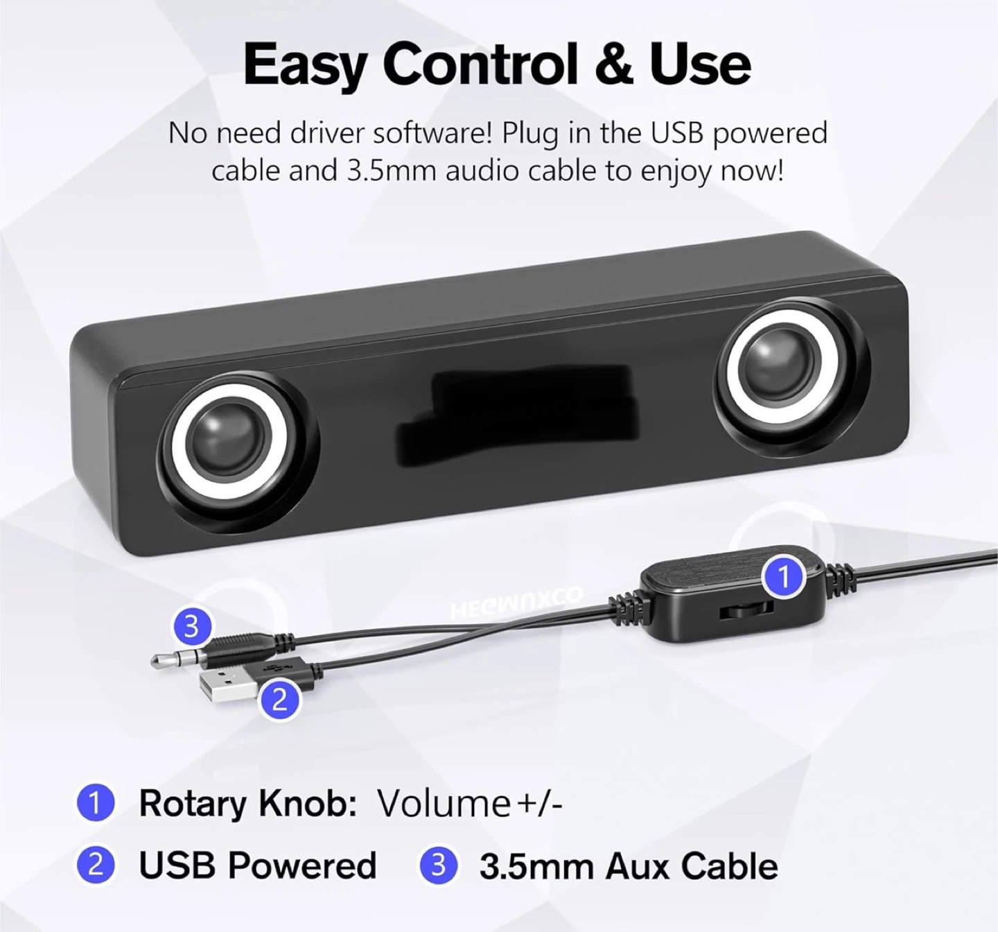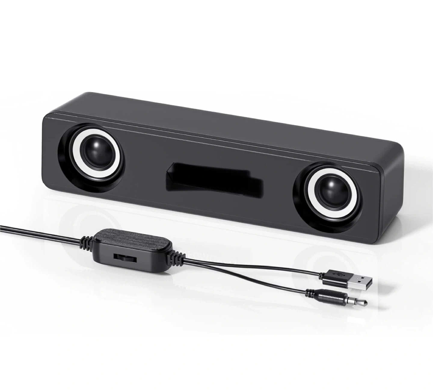 Compact PC Speakers for Desktop - 10W Wired Stereo Speaker with Volume Control Knob, USB Powered, 3.5mm Audio Input, Laptop Expertly Tuned Computer Soundbar with Deep Bass for Office, Home, and Gaming