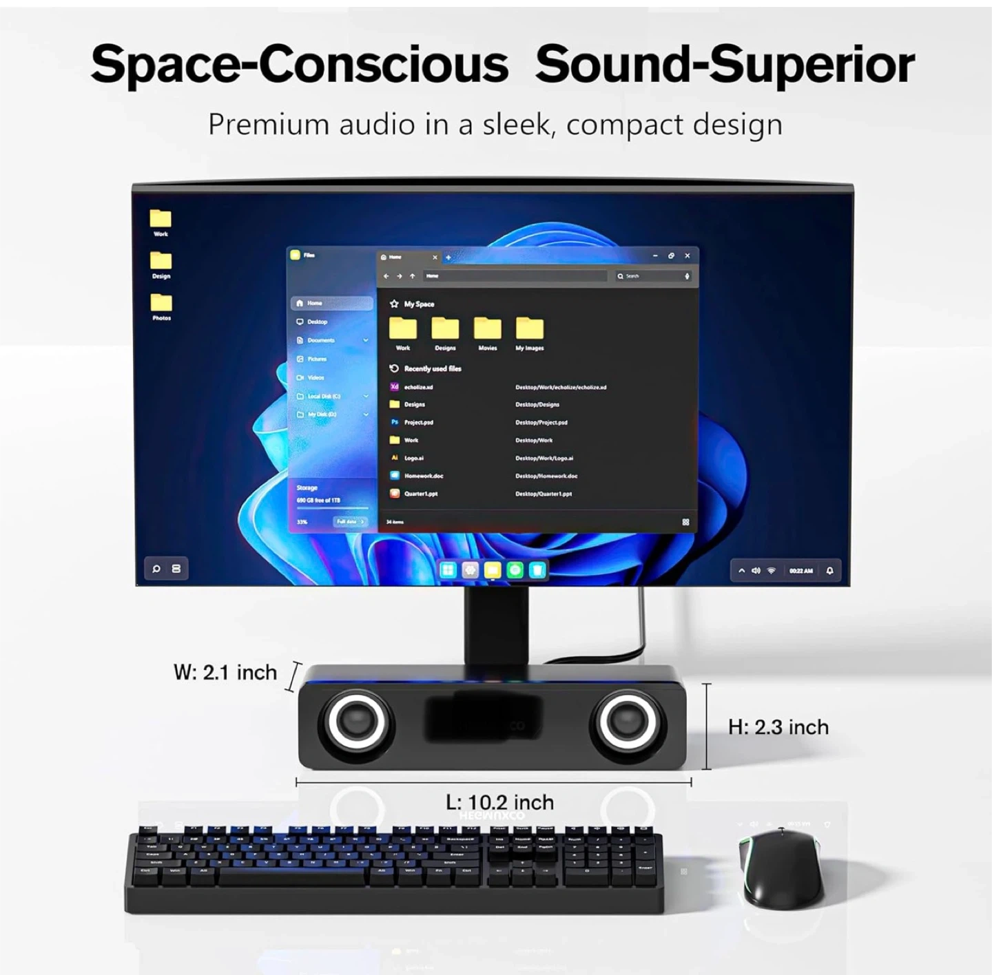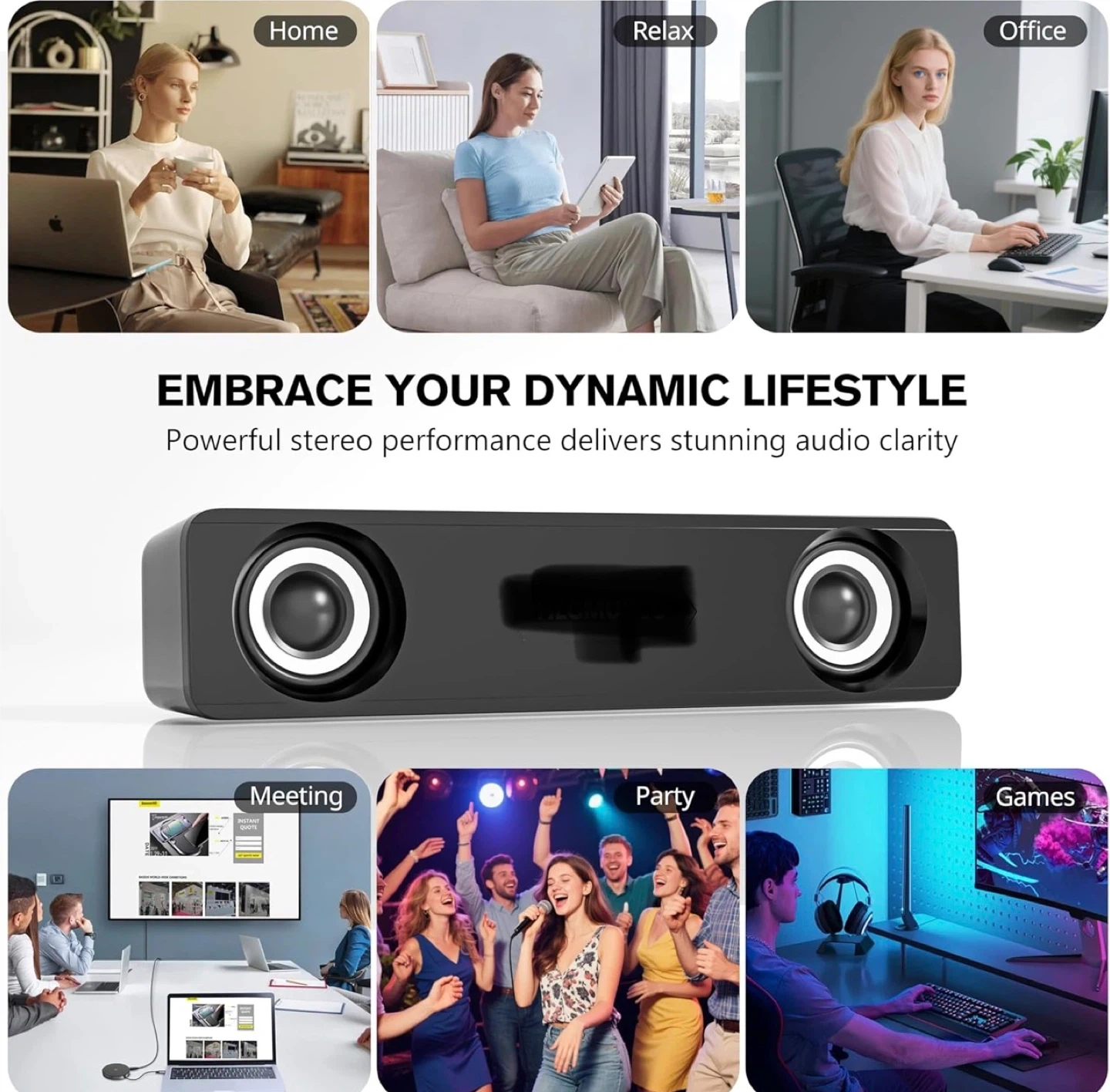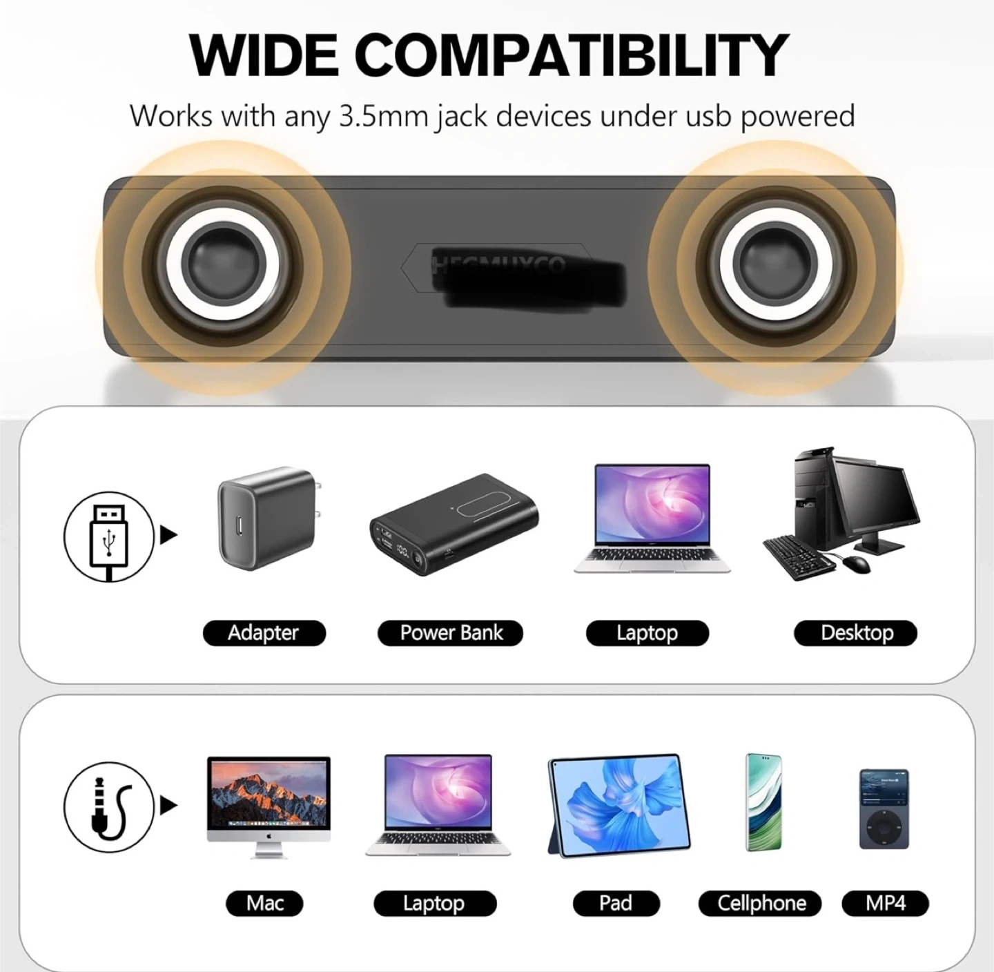 Compact PC Speakers for Desktop - 10W Wired Stereo Speaker with Volume Control Knob, USB Powered, 3.5mm Audio Input, Laptop Expertly Tuned Computer Soundbar with Deep Bass for Office, Home, and Gaming