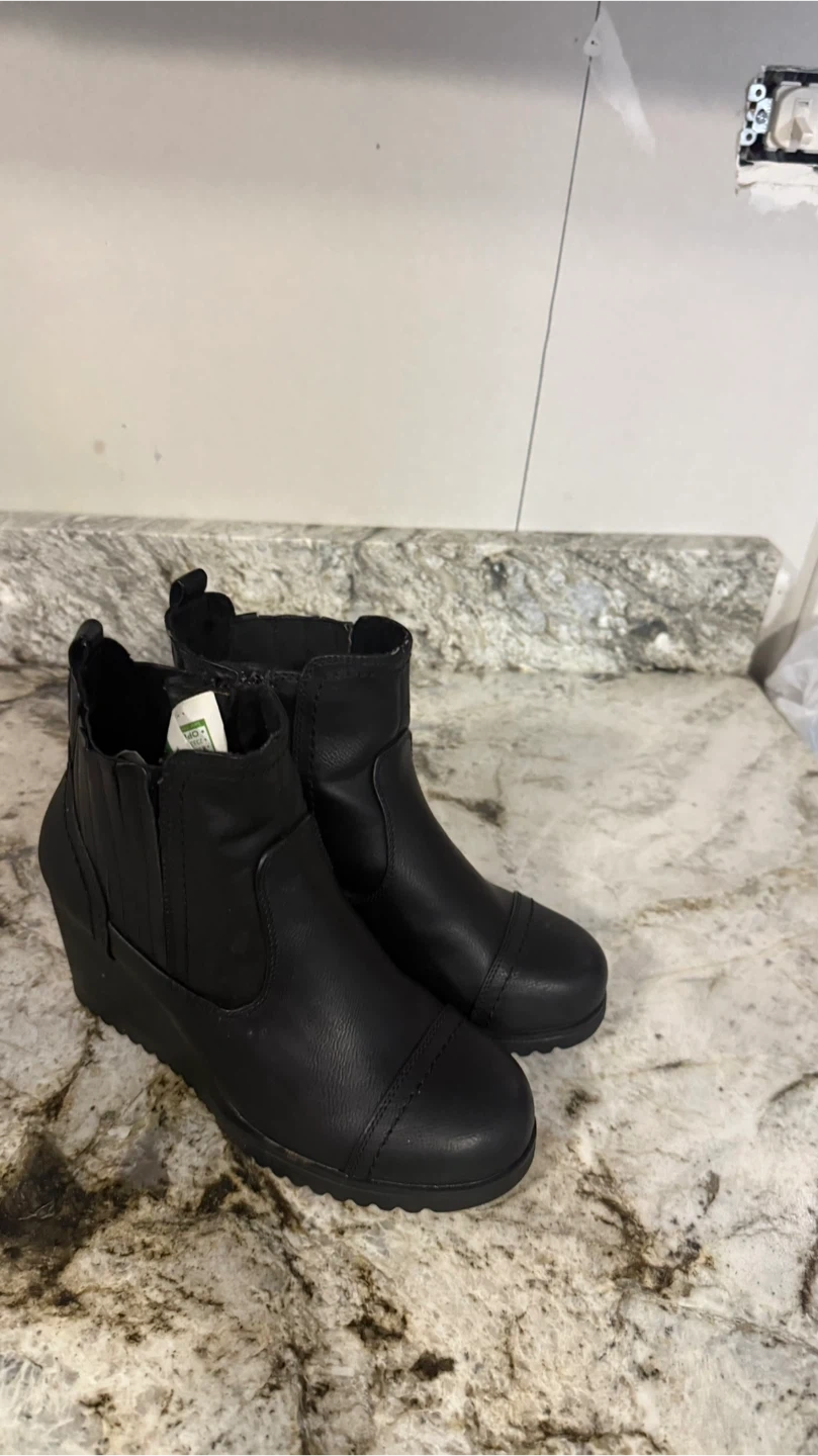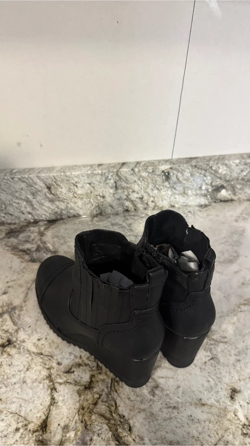 Khombu Black Wedge Ankle Boots size 7