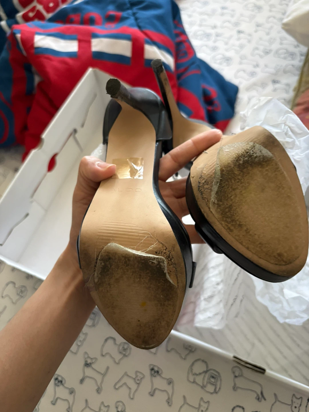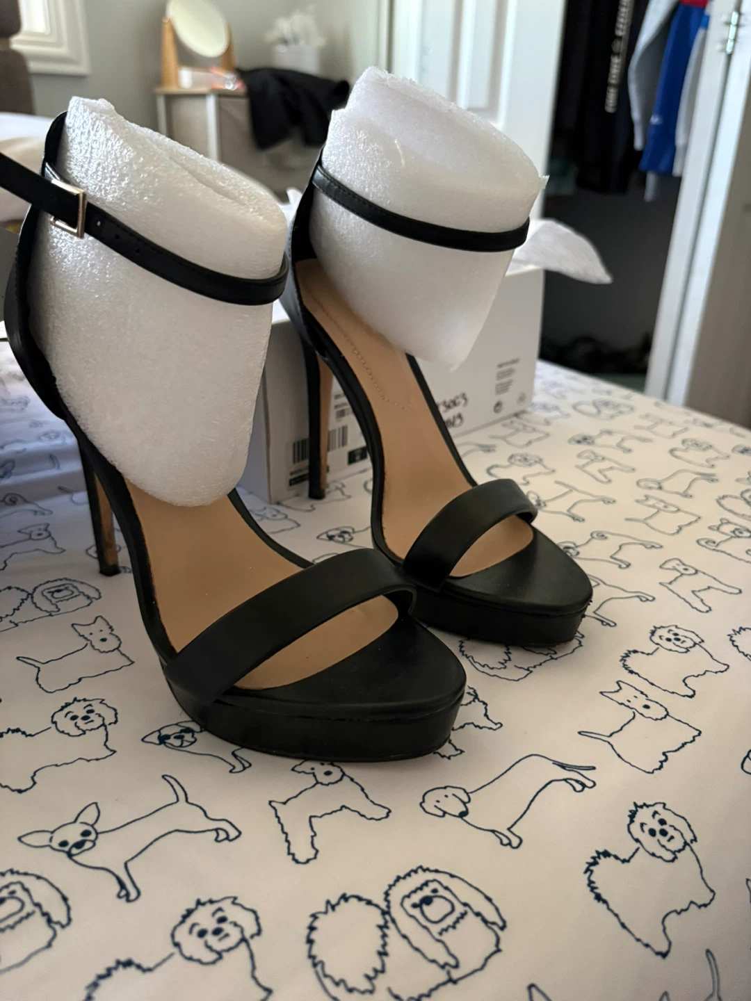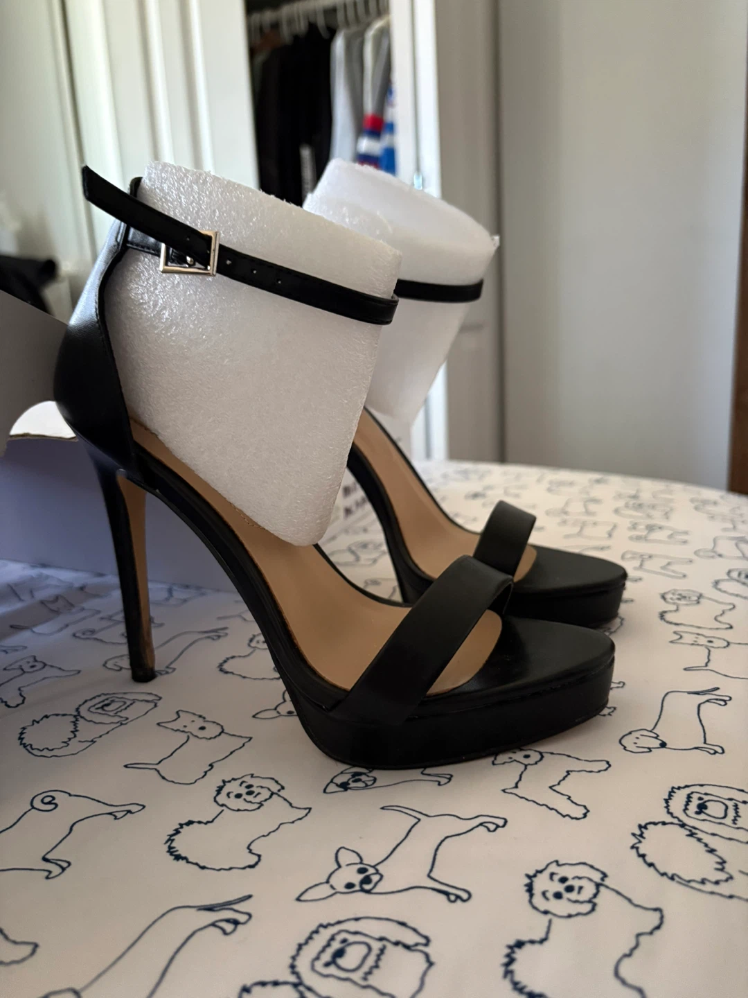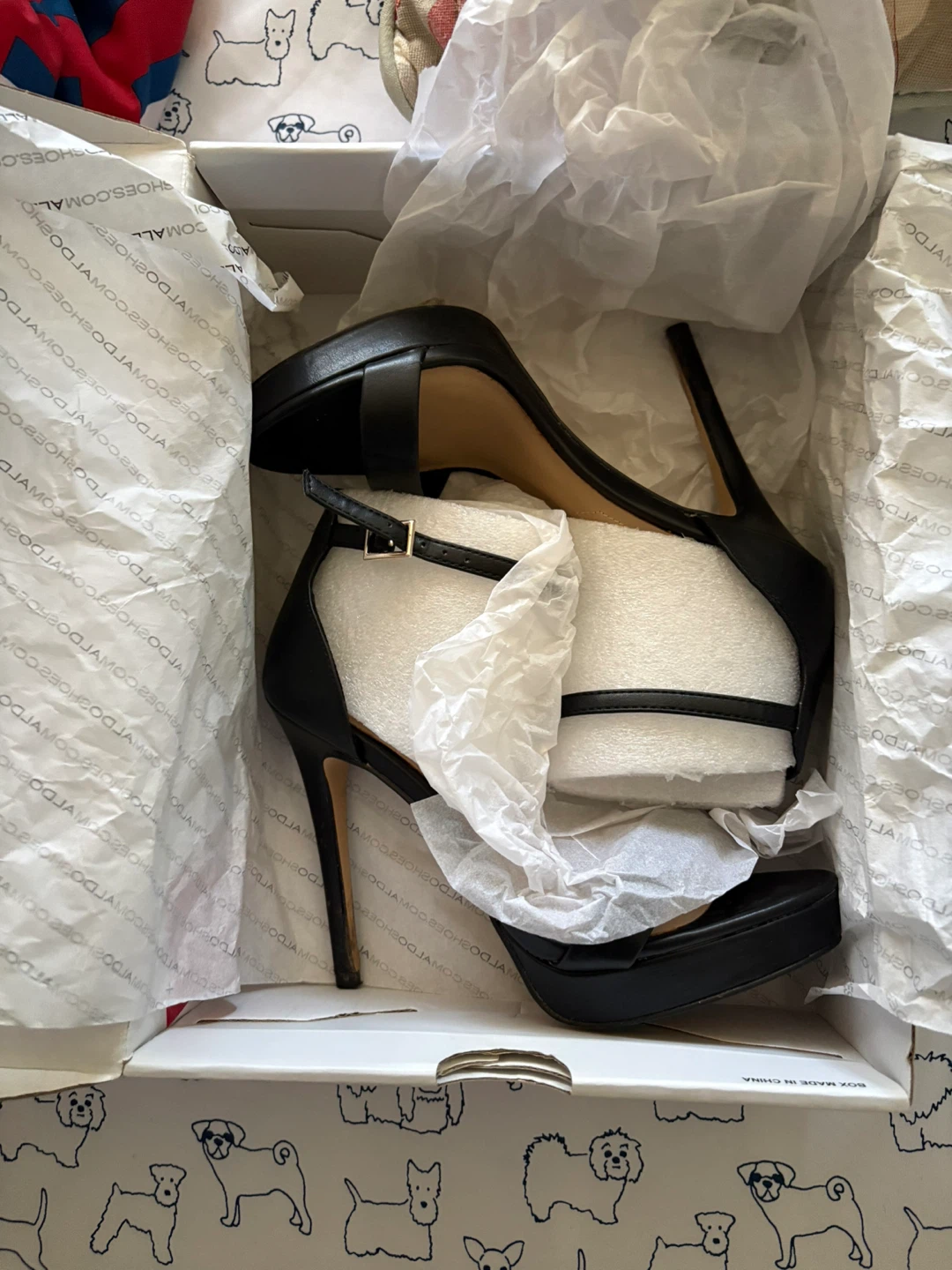 ALDO black platform stiletto heels with ankle straps. These heels feature a sleek design and a comfortable platform. Includes original box.