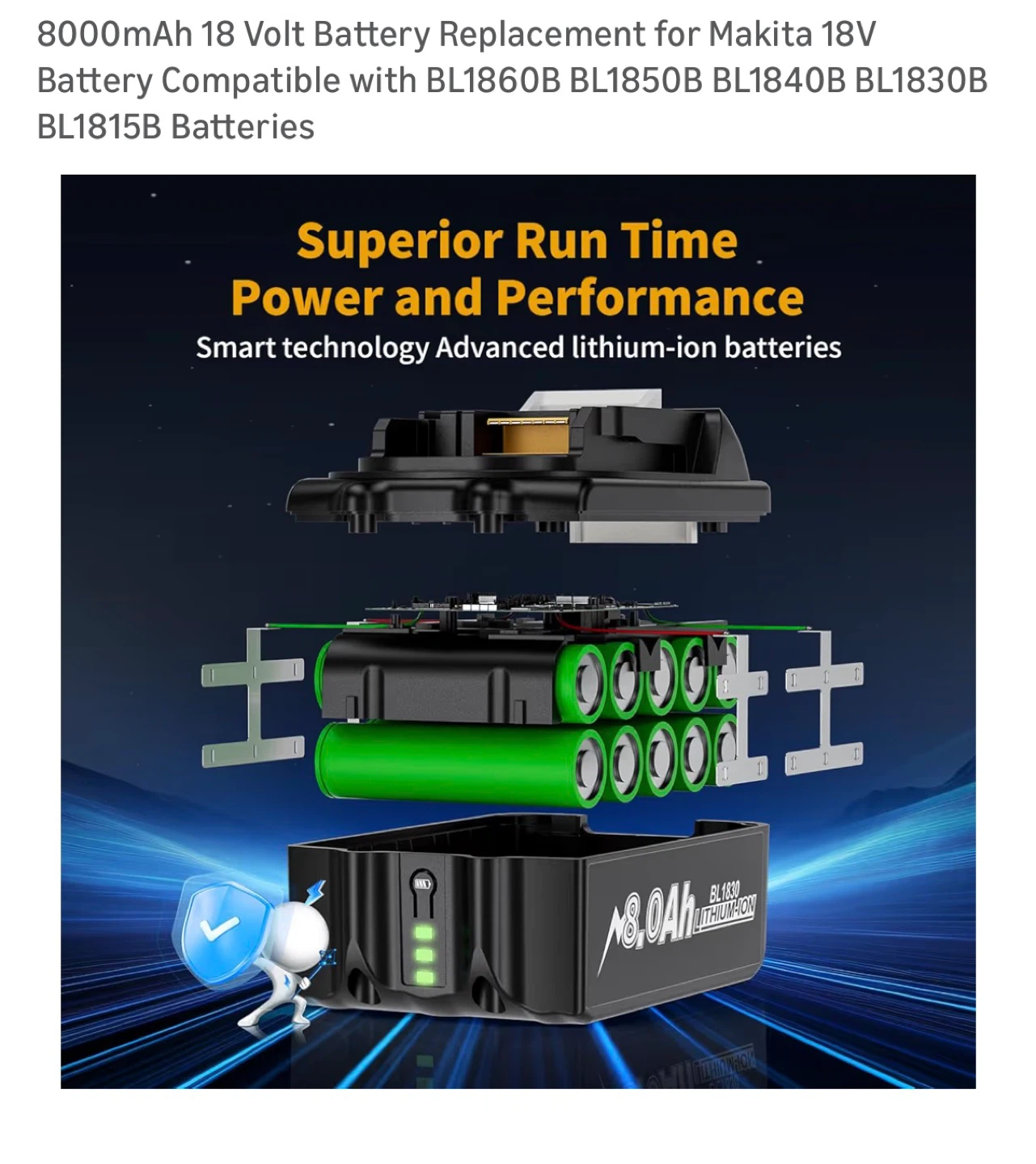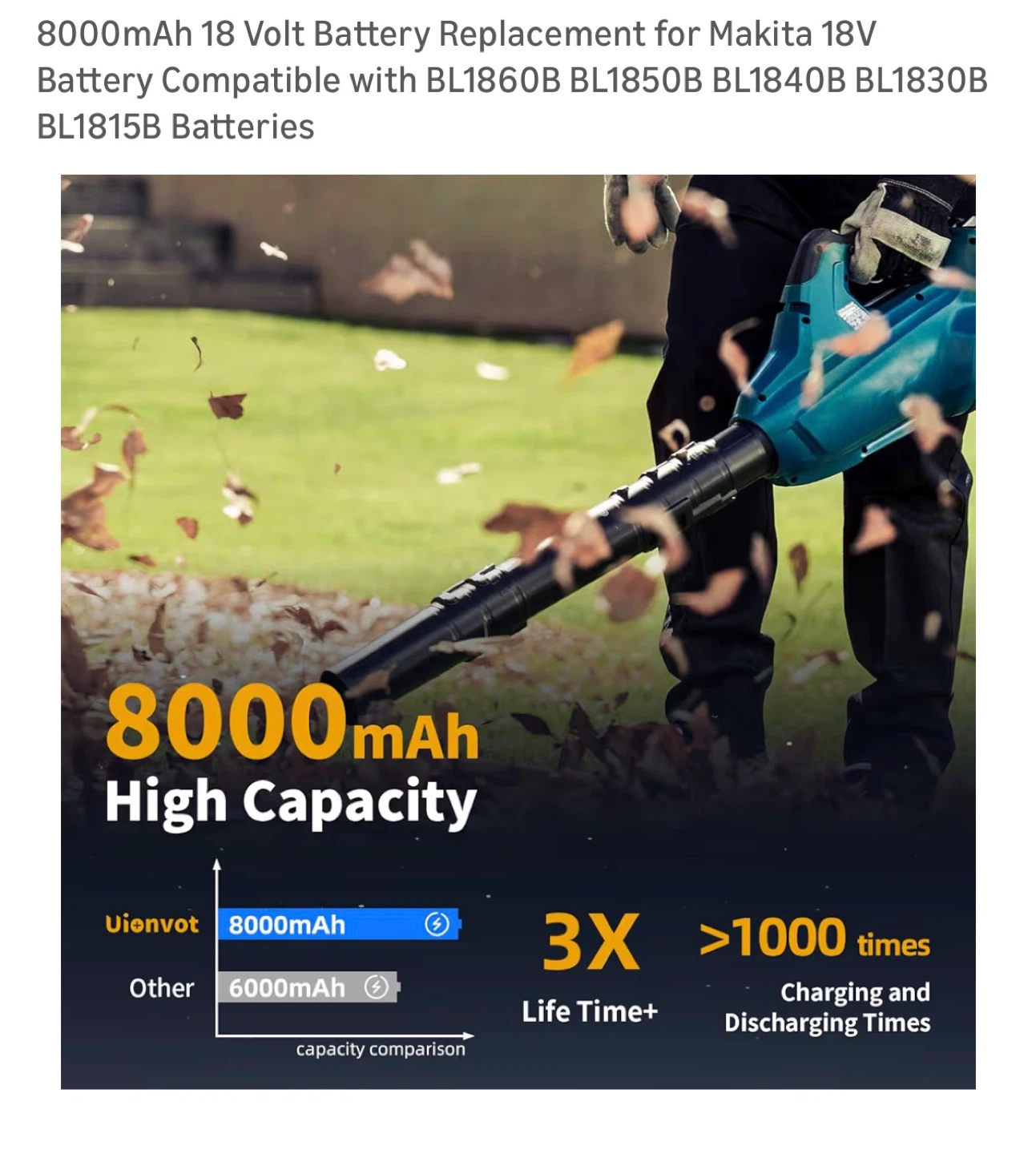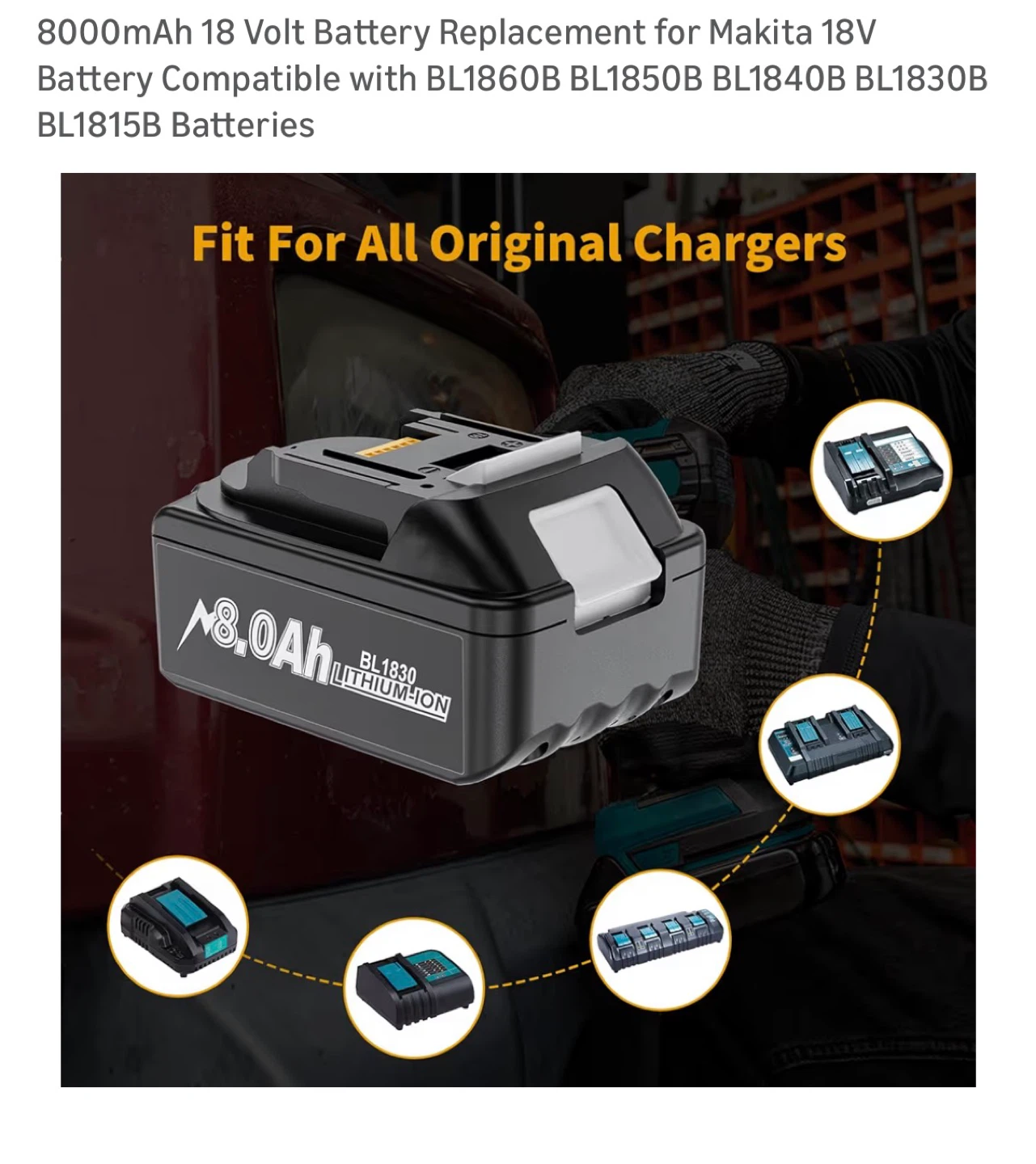 8000mAh 18 Volt Battery Replacement for Makita 18V Battery Compatible with BL1860B BL1850B BL1840B BL1830B BL1815B Batteries