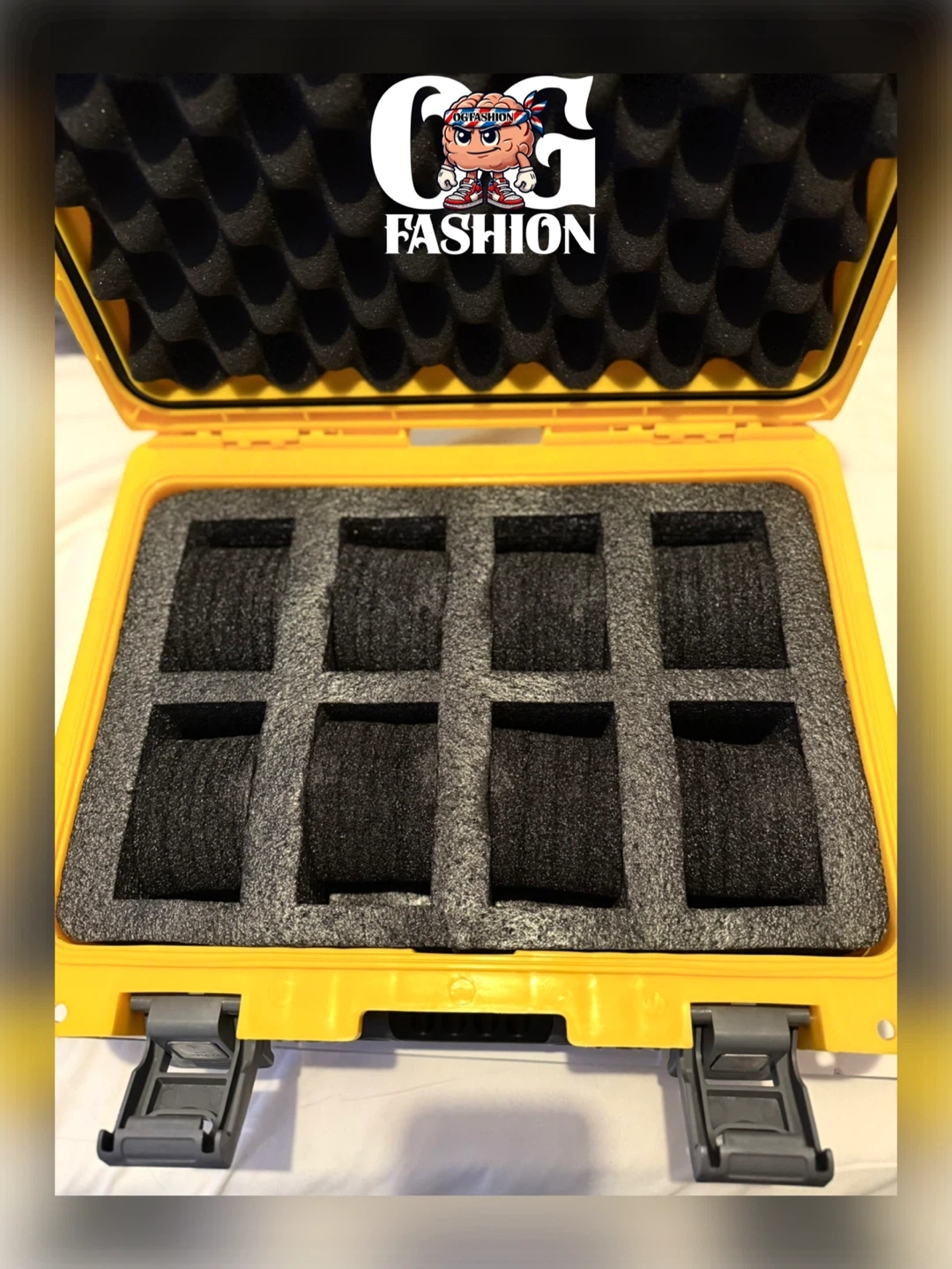 Durable protective case with custom foam interior designed to safely hold multiple watches.