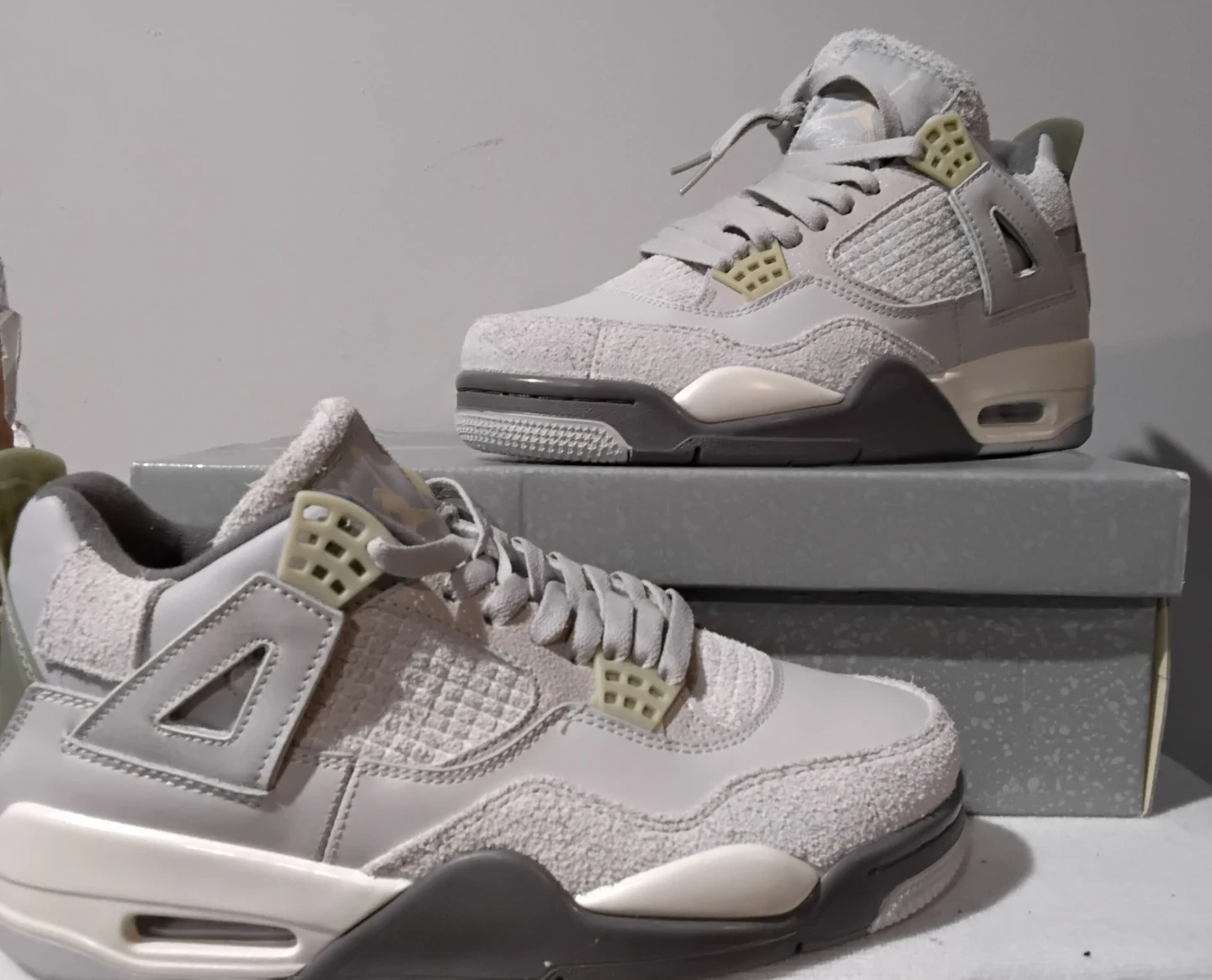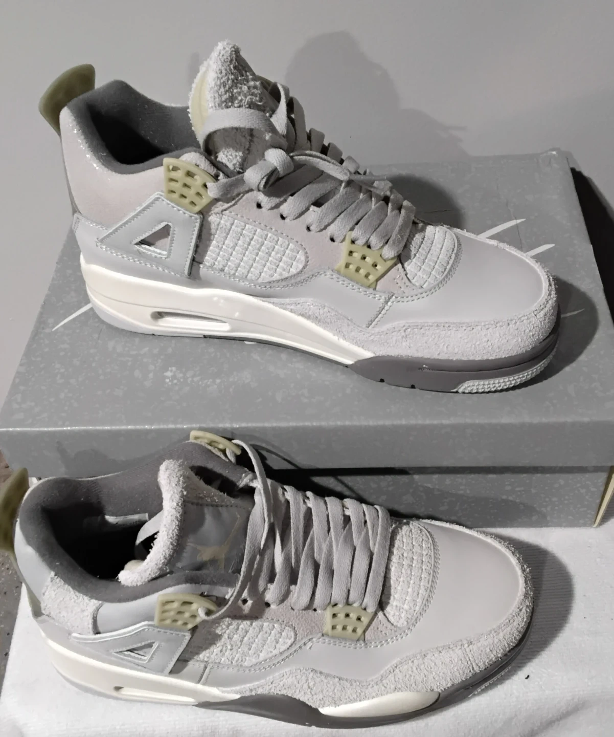 Air Jordan 4 Retro SE 'Craft' in Photon Dust. These sneakers feature a mix of suede and textile materials. They come with original packaging. Size is evident from the shoe design.