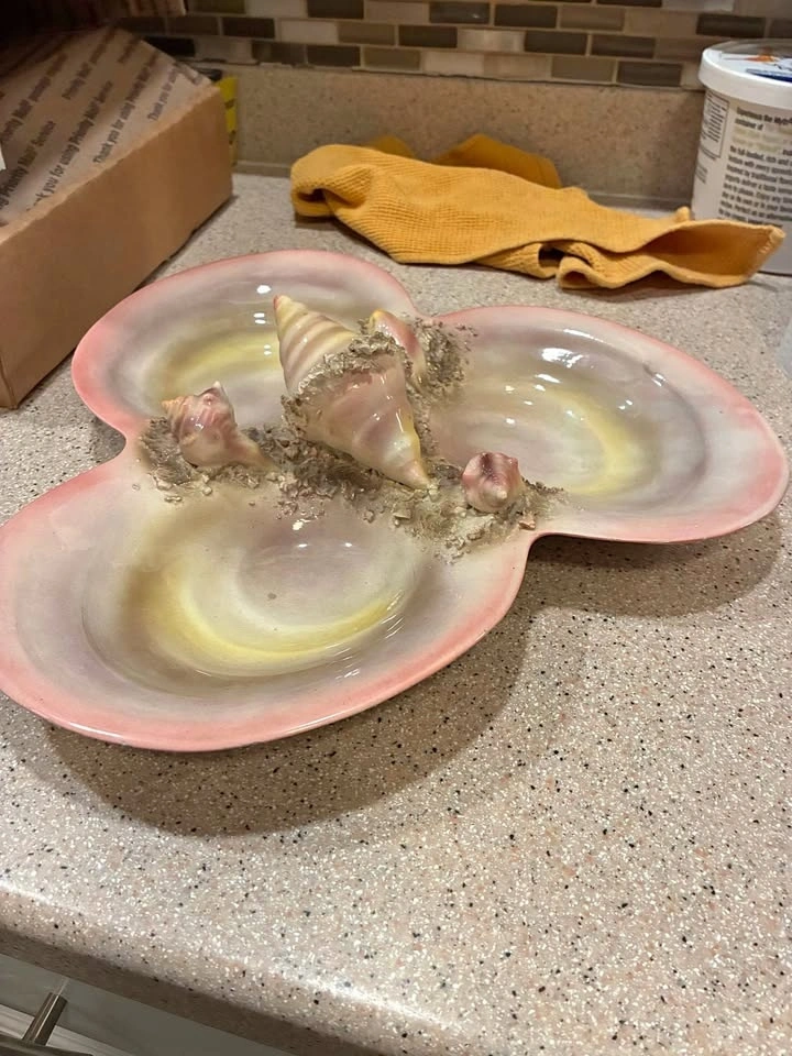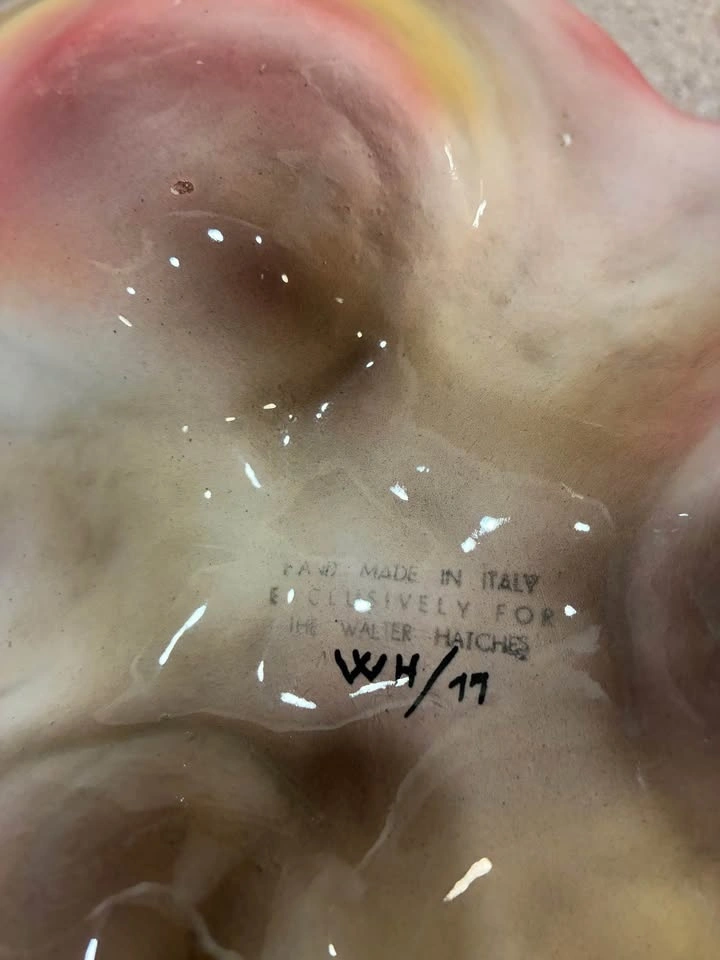 Made exclusively for Walter Hatches WH/11. This piece fits a classic mid-century Italian export aesthetic with seashells and textured sand for a decorative coastal theme. The soft, pastel glaze and divided form suggest it was both decorative and functional, designed to be used as a serving dish or tabletop accent. This particular piece was in my grandparents’ since the 1950’s. No chips or cracks.