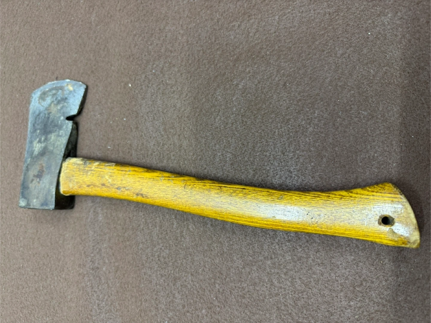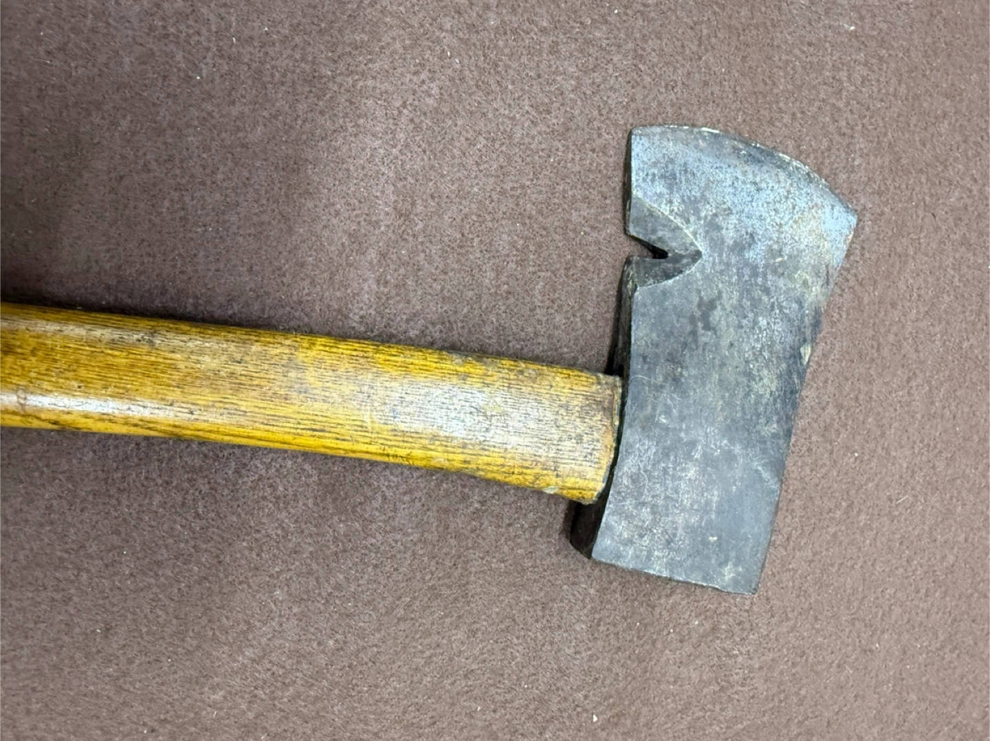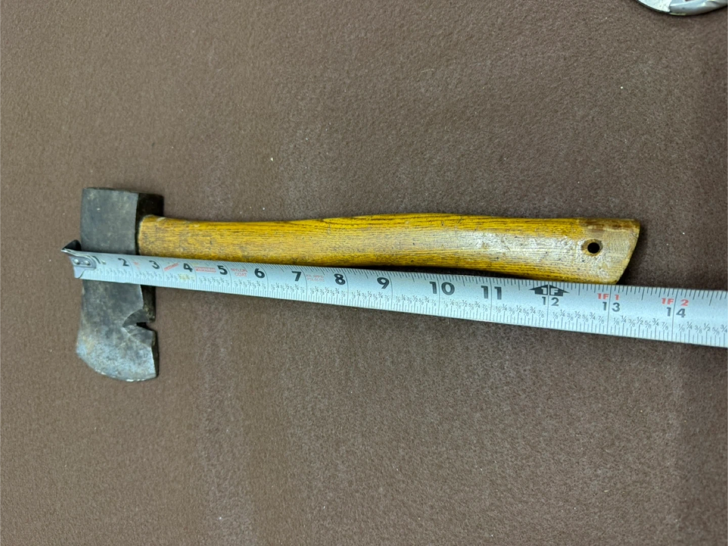 Great for collectors, carpentry tool collections, or workshop use. This is a vintage hand axe with a wooden handle. It measures approximately 13 inches in length. The axe head is metal and shows signs of age and use.