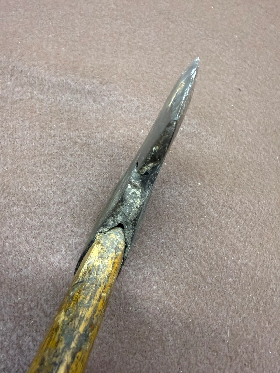 Classic roofer and carpenter tool used for cutting wood shingles and pulling nails.