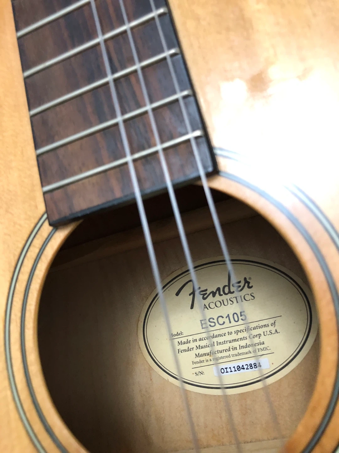 Selling a Fender Acoustics ESC105 classical guitar! It's in good condition and ready for a new owner to enjoy playing. The serial number is 0111042884. With case