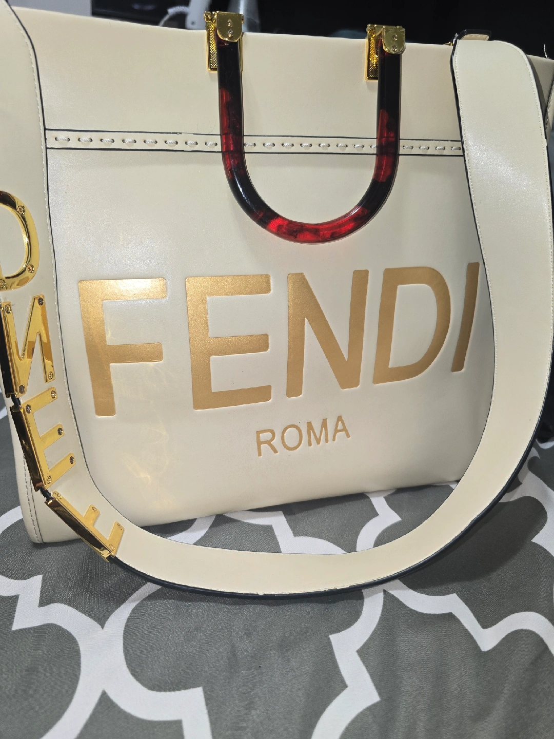 Selling a Fendi Roma ivory tote bag. It's in good condition and ready for a new home! The bag features the Fendi Roma logo prominently on the front.