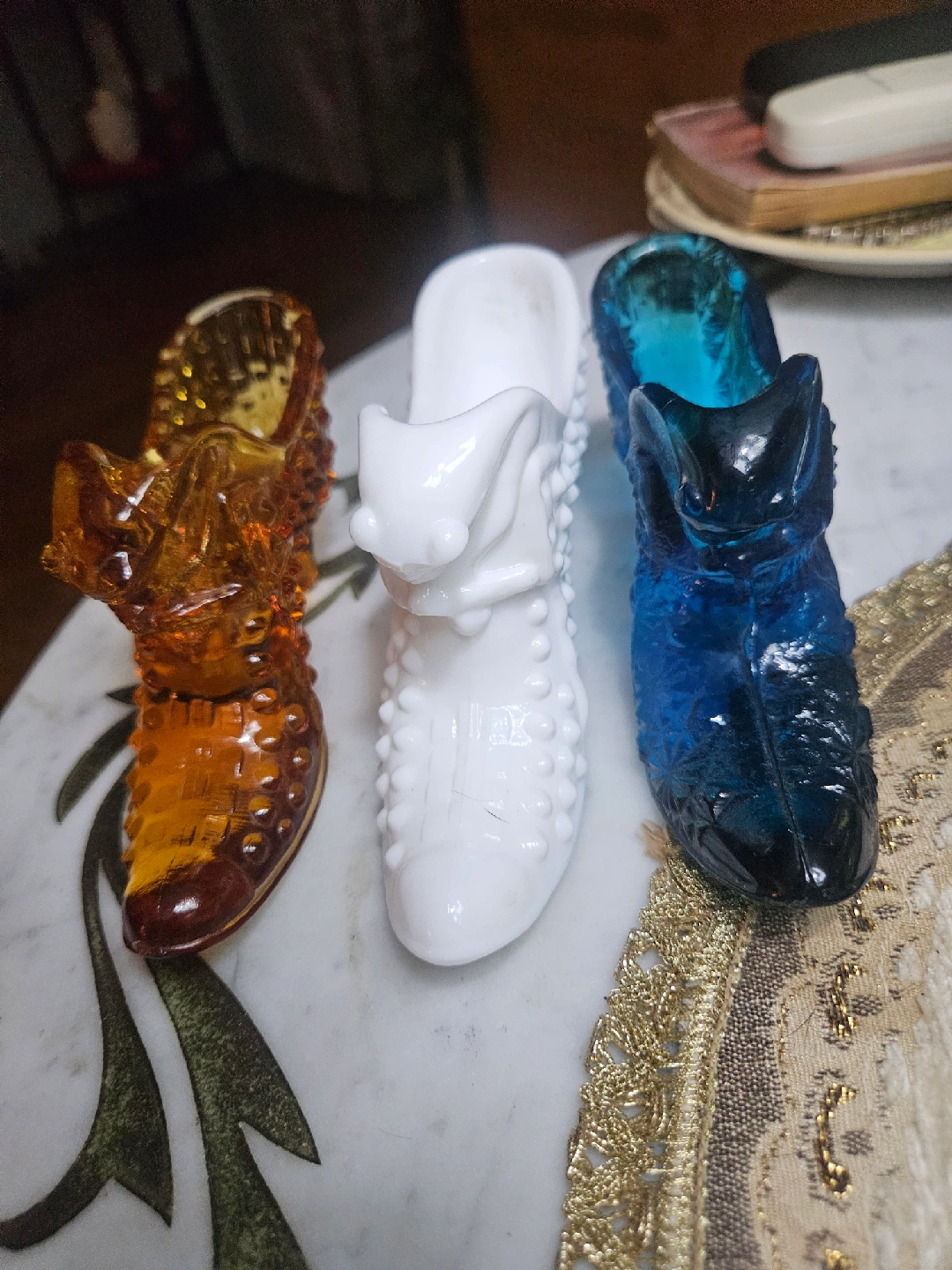 Fenton Hobnal Collectible Art.Glasses, slipper shoe cat head.price is for 1-pieces