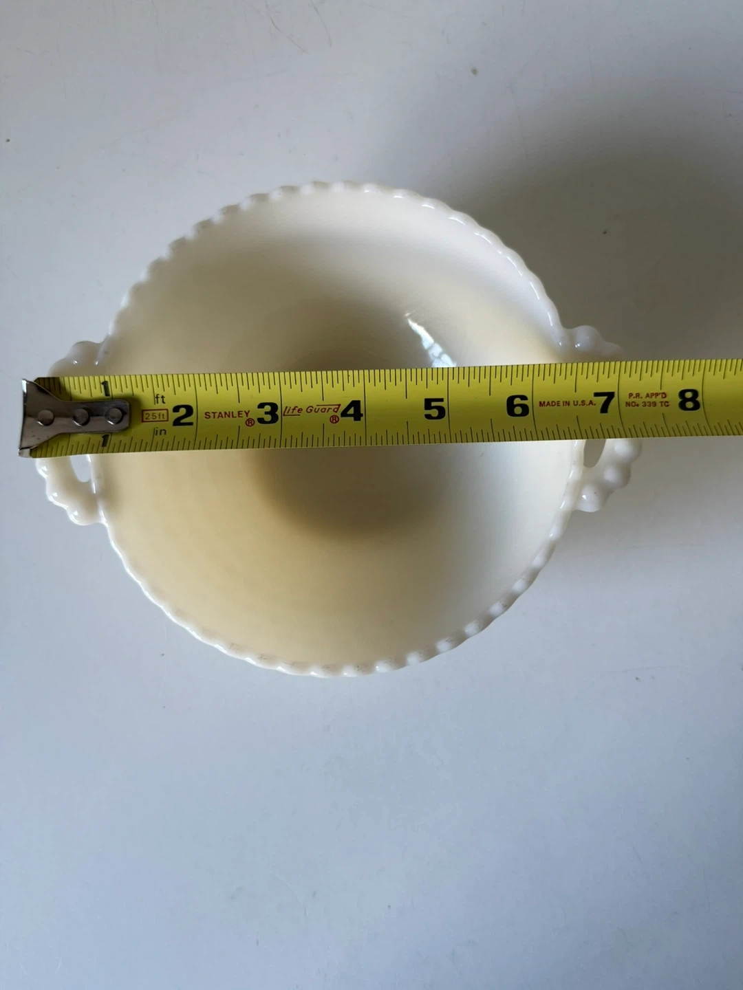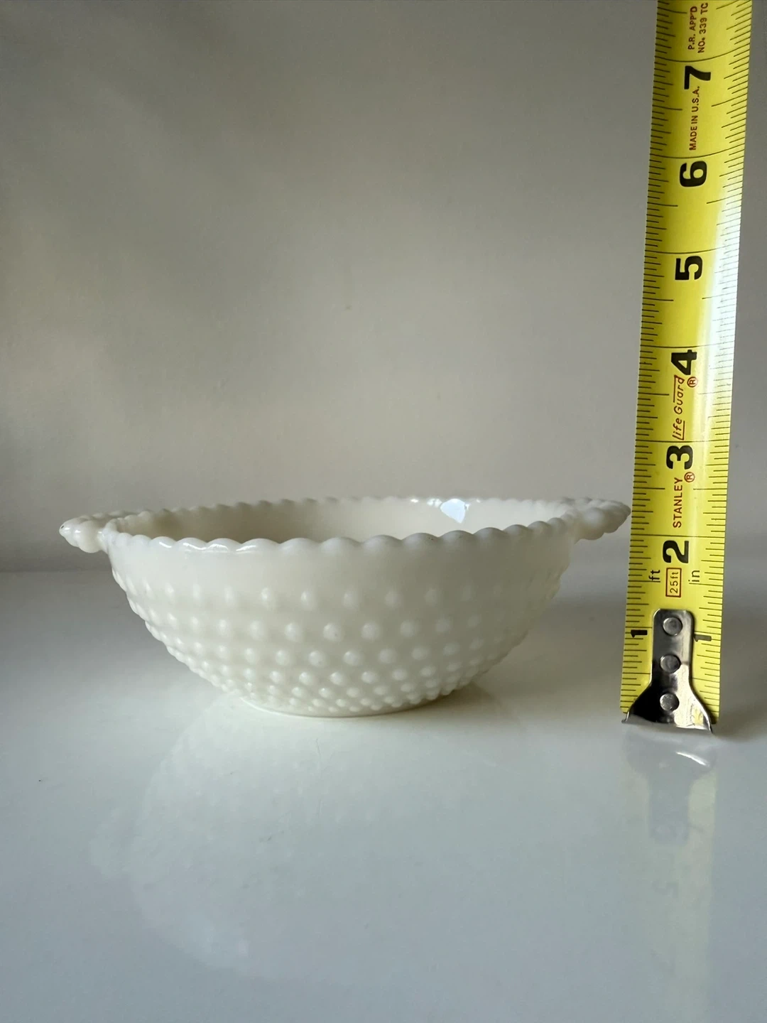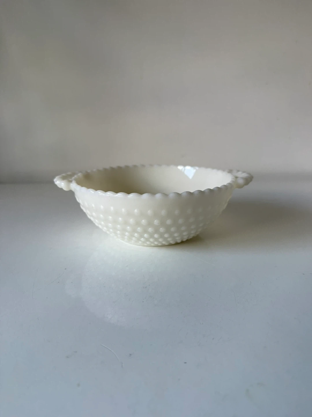 Selling a beautiful Fenton milk glass bowl! It measures about 7 inches in diameter. It's in great condition and would look lovely in any home