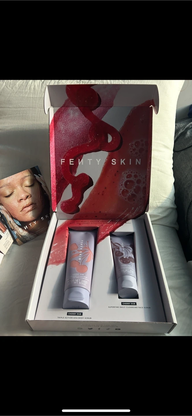 15Selling a Fenty Skin Cherry Dub set! It includes the Triple Action AHA Body Scrub (8.5oz) and the Superfine Daily Cleansing Face Scrub. Get bright, smooth skin with two cherry-effective scrubs for face and body