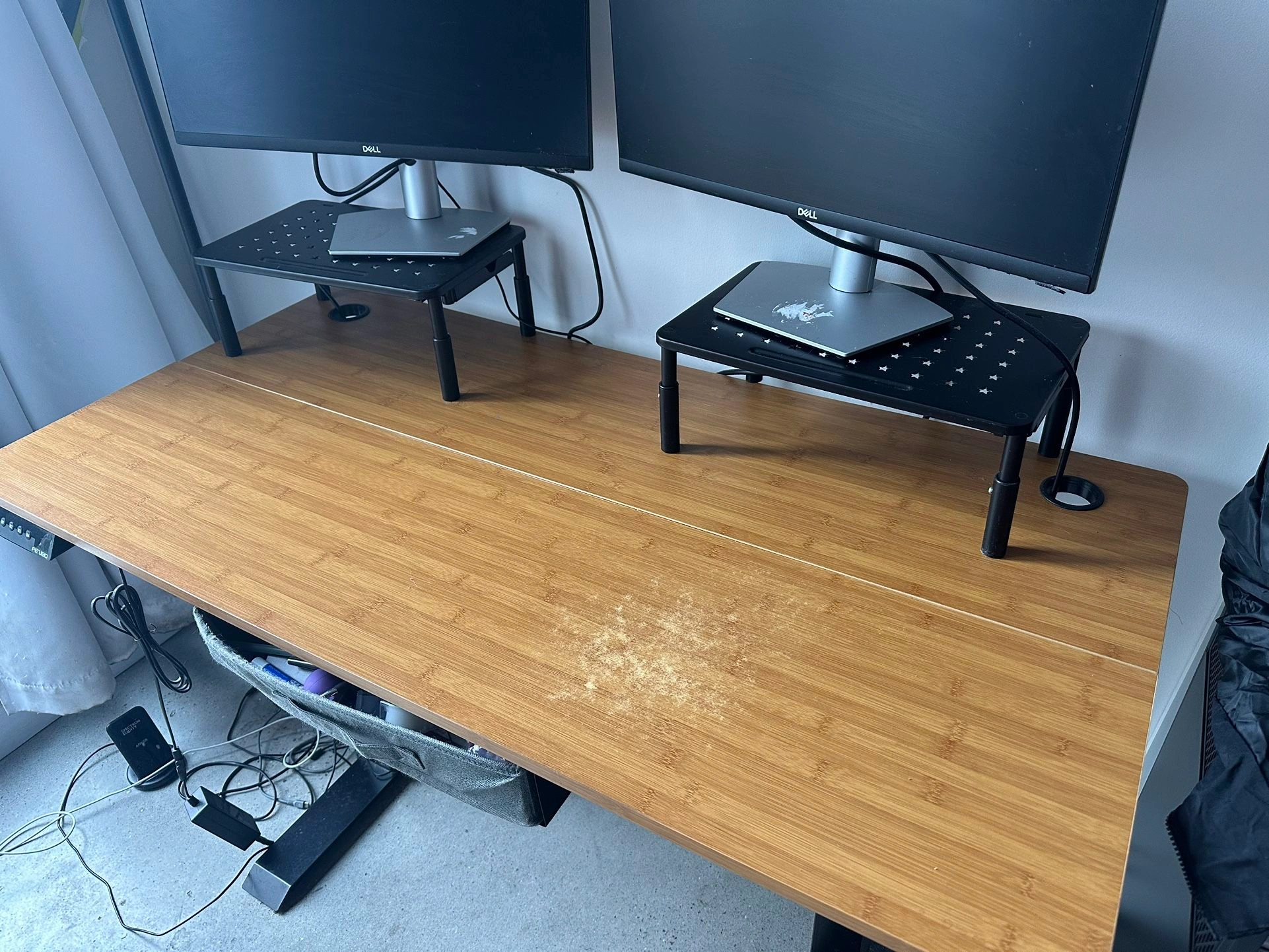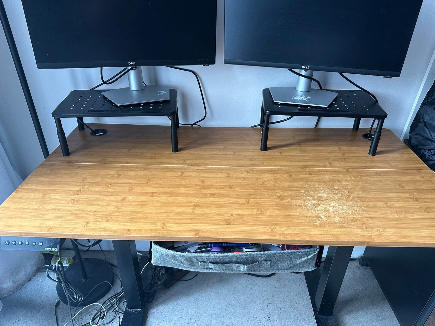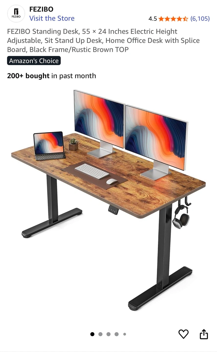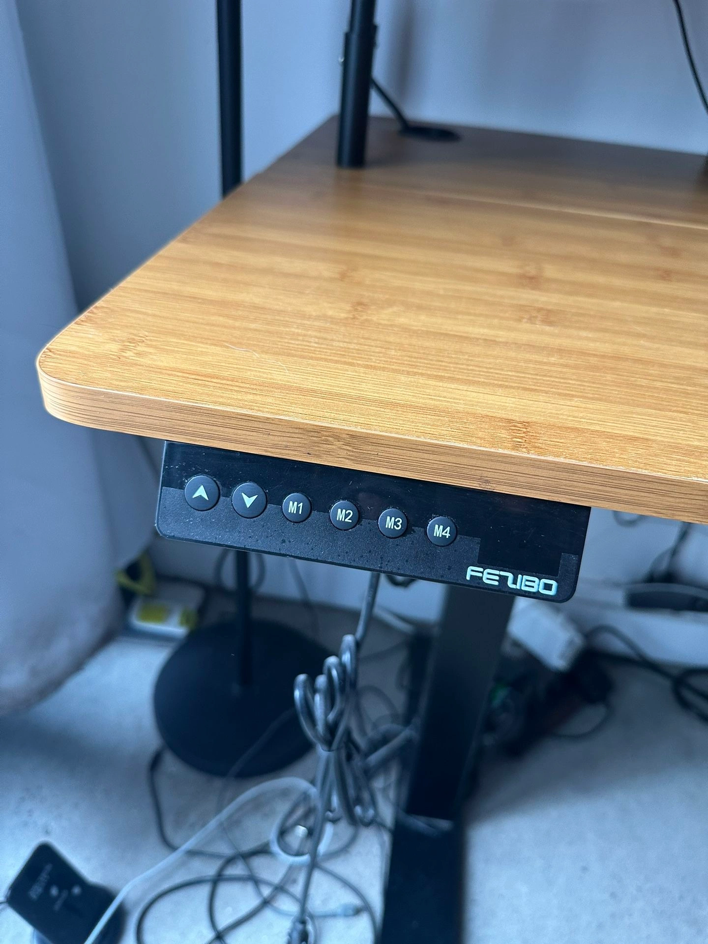 This is the best standup desk I’ve ever owned but it’s too expensive to ship to my new place. It’s mechanics are in perfect condition but it does have a wear spot on top from my mouse. Bought new for $250. The 48” x 24" desktop provides ample space for dual monitors, printers, and other office essentials but takes up very little space. Has USB port too. I will throw in the Fezibo wobbleboard footrest (bought separately) for free. Can be disassembled for easy transportation Built with a solid steel frame and aerospace-grade lifting column connectors, the desk remains stable and secure even after 100,000 lift tests. Height Range: Adjust desk height from 28.3" to 46.5" at 1"/second, and is extremely quiet when moving up and down. Features four memory presets for quick adjustments. Designed to promote a healthier lifestyle, the adjustable height supports seamless transitions between sitting and standing, reducing the risks of prolonged sitting such as leg swelling and back strain. This sit-stand workstation encourages better blood circulation, reduced muscle tension, and improved spinal health. Material: Wood Type: Desks & Tables Brand: Fezibo