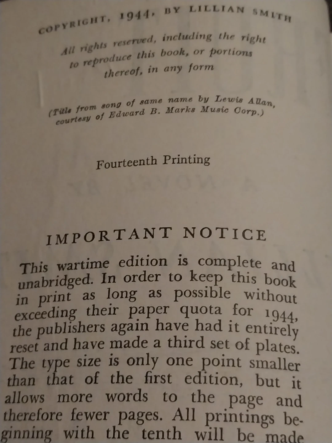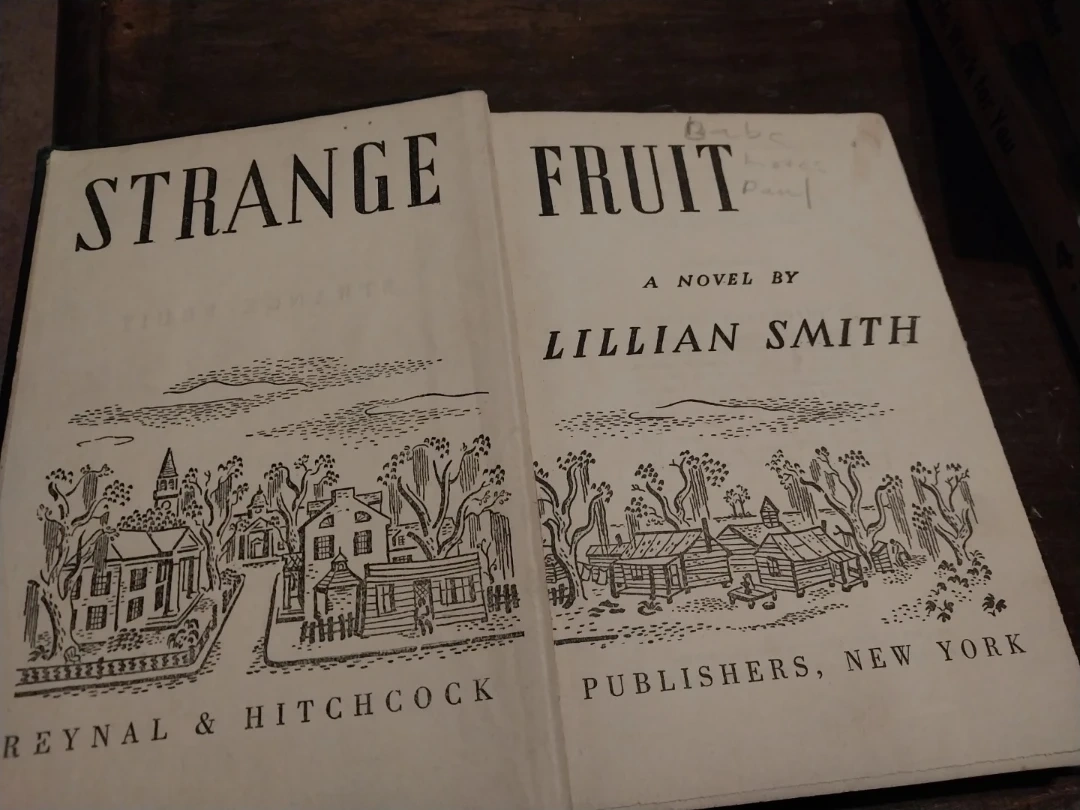 Selling a copy of "Strange Fruit" by Lillian Smith. This is a novel published by Reynal & Hitchcock, New York. It's a wartime edition, complete and unabridged. A few pages have some discoloration as shown only affects 4-5 pages Copyright 1944.