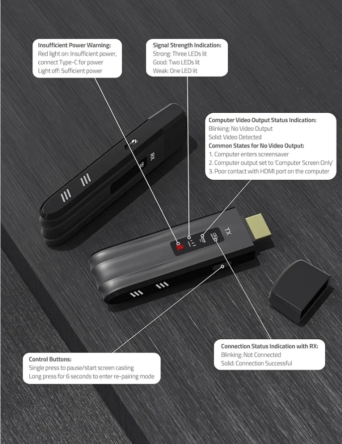 76FHG Wireless HDMI Transmitter and Receiver 4K, Plug & Play Portable 2.4G/5G 165FT Wireless HDMI Extender Kit for Streaming Video and Audio to Monitor from Laptop/PC/TV Box/Projector