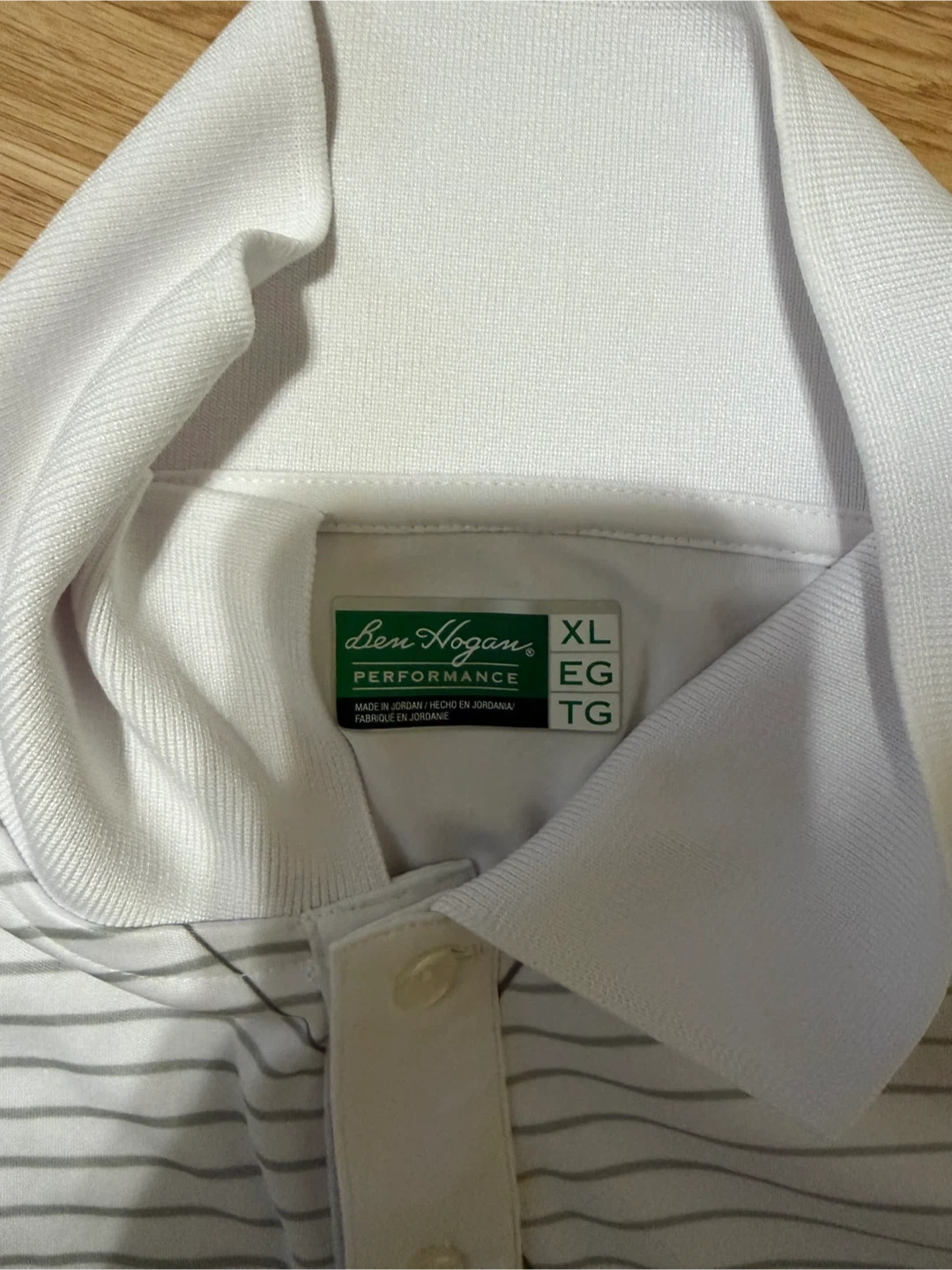 Ben Hogan Performance Golf Polo Shirt XL White Gray Stripe