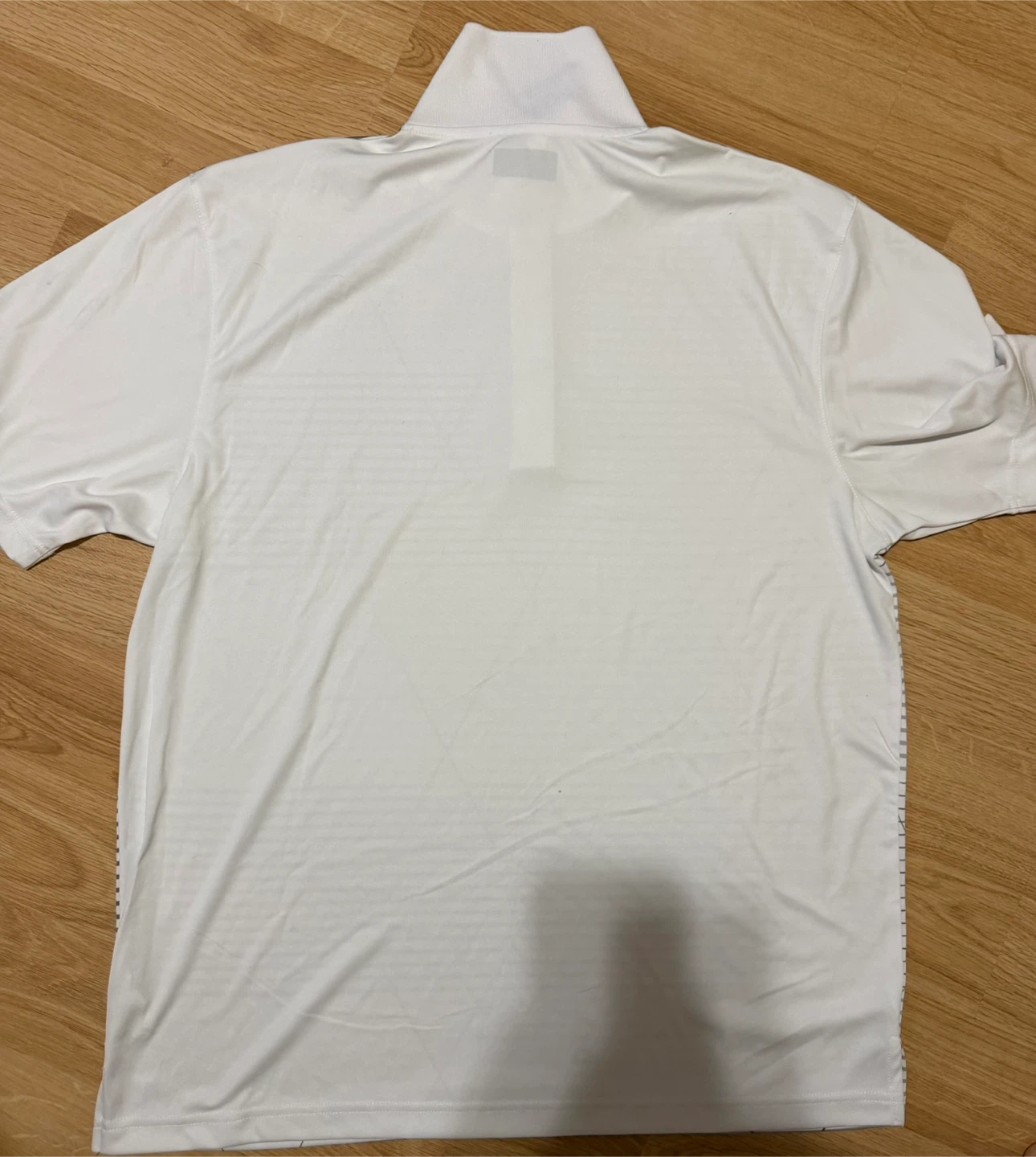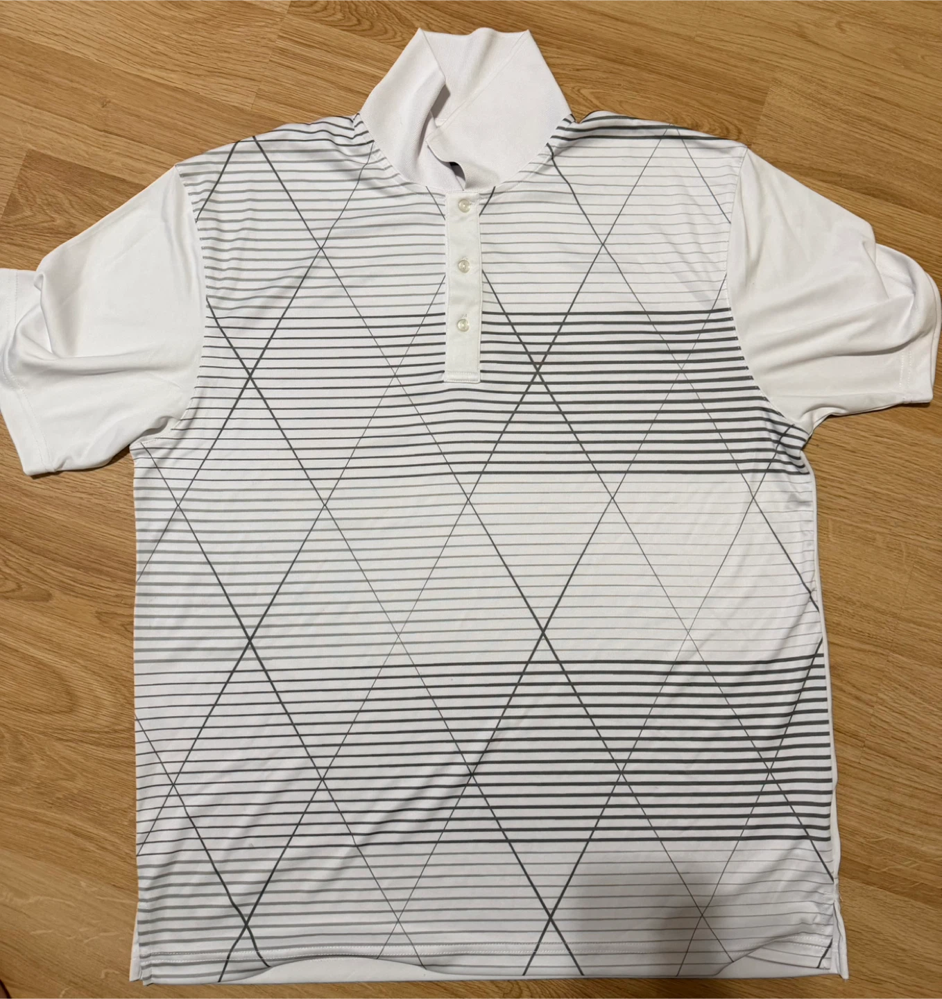 Ben Hogan Performance golf polo shirt. White with gray stripes and geometric pattern. Size XL. Breathable fabric.