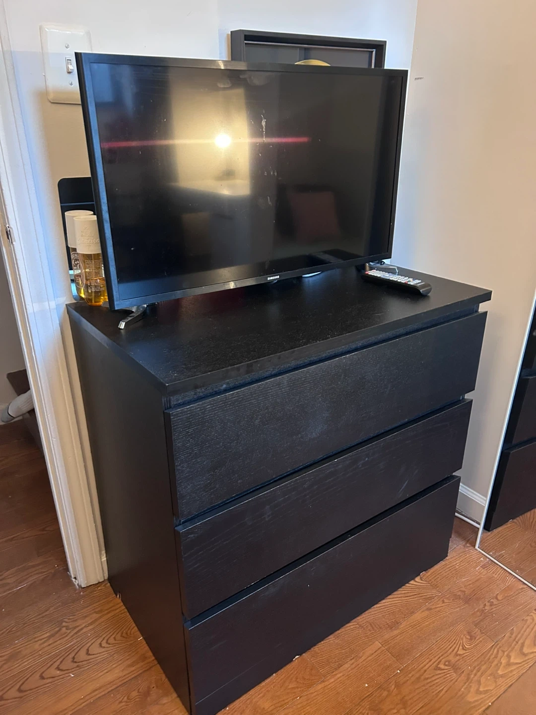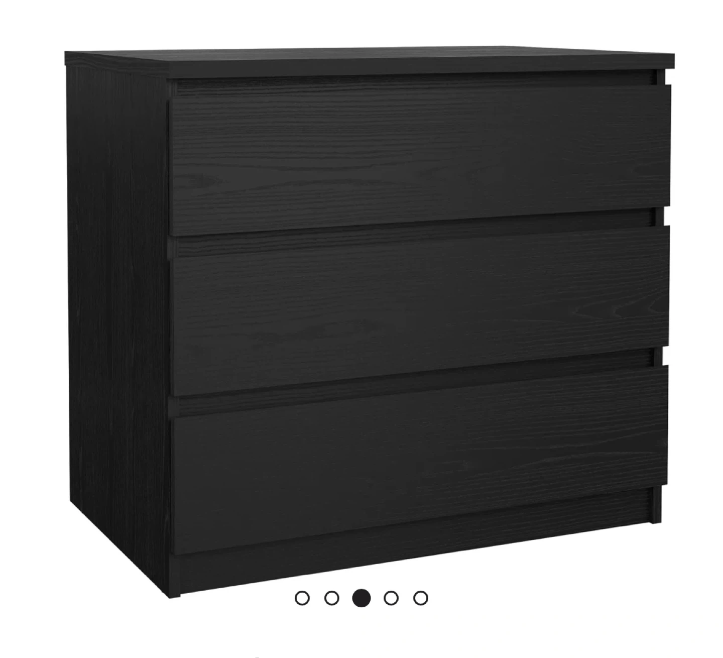 Selling a 3-drawer dresser in black woodgrain color. It's in good condition and the original price was $149.99