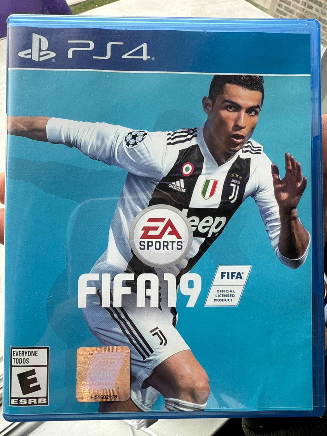 10Selling a used copy of FIFA 19 for the PlayStation 4 (PS4). It's the edition featuring Cristiano Ronaldo in the Juventus jersey.