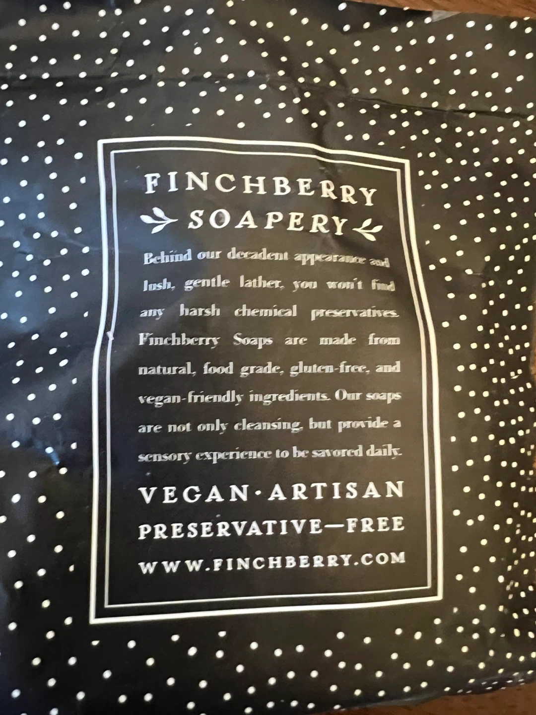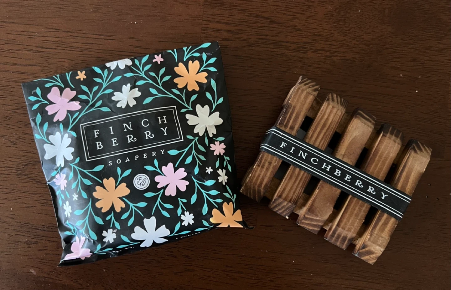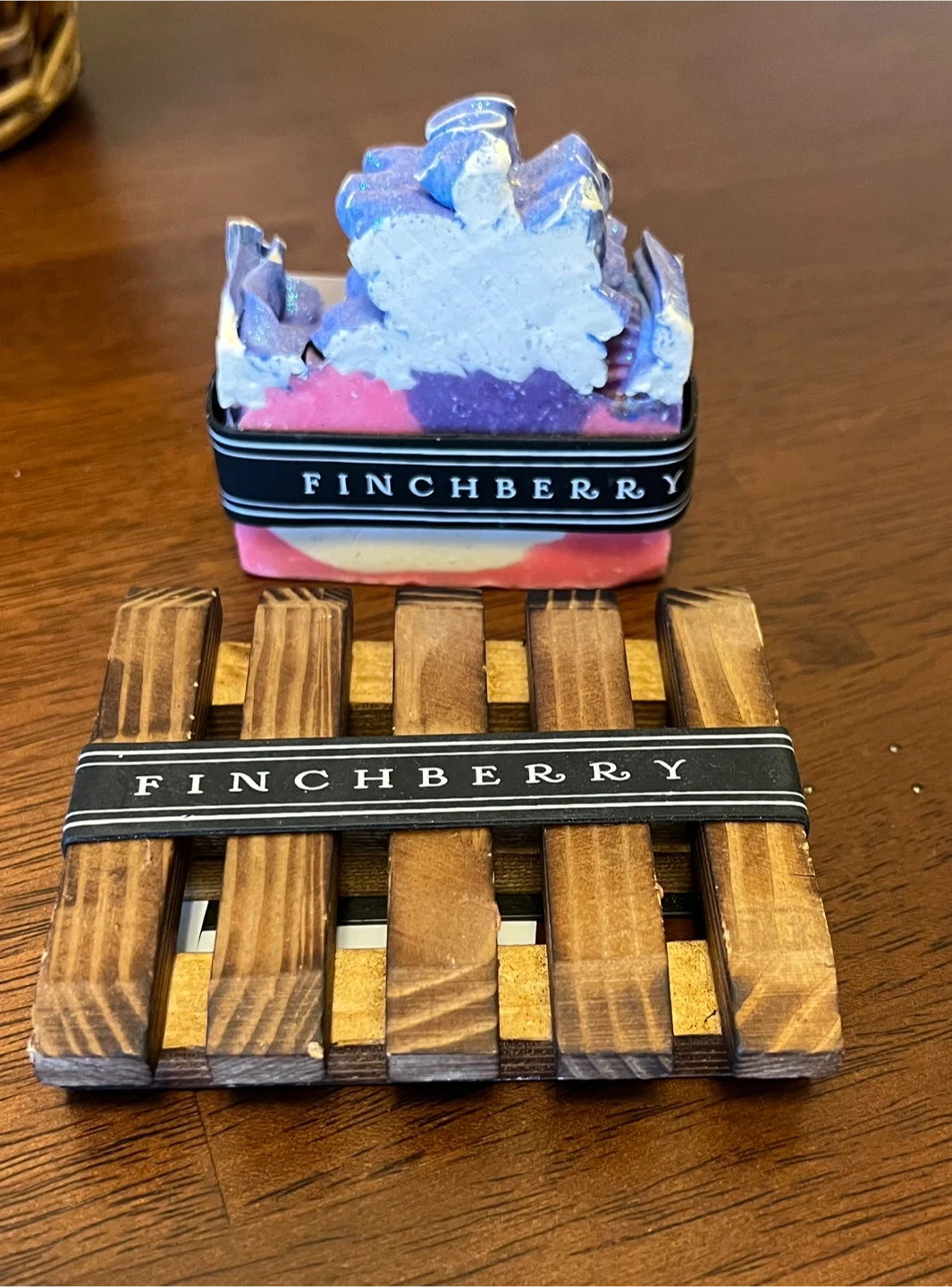 Selling a Finchberry artisan vegan soap along with a wooden soap deck. Finchberry soaps are made from natural, food grade, gluten-free, and vegan-friendly ingredients. The soap deck is a great way to keep your soap dry and lasting longer.