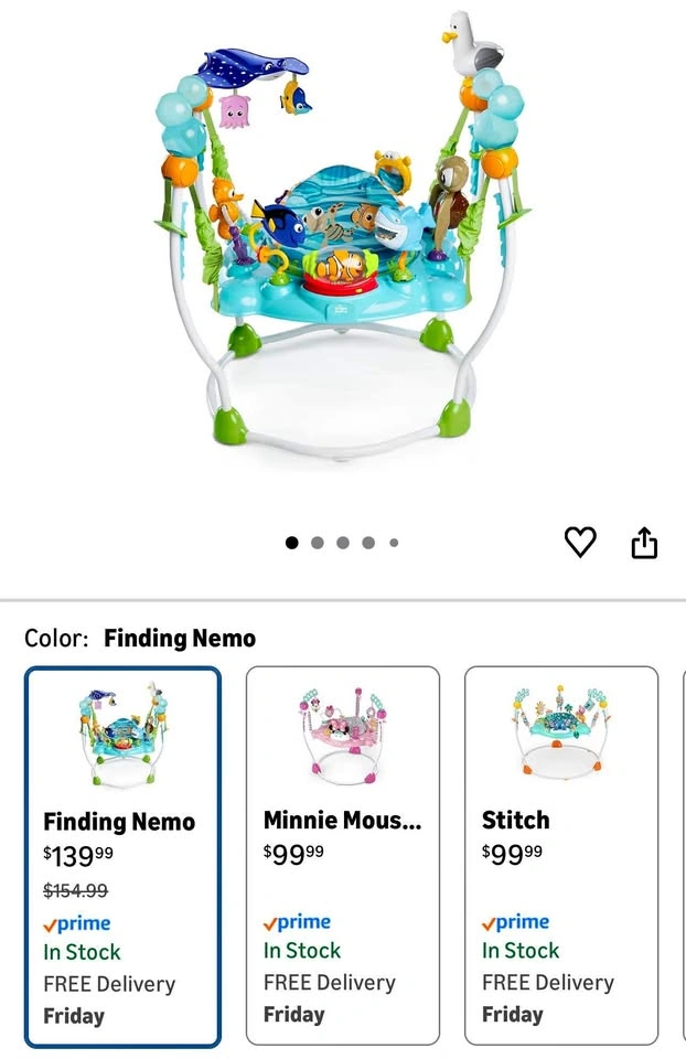 15Bright Starts Disney Baby Finding Nemo Sea of Activities Baby Activity Center Jumper with Interactive Toys, Lights, Songs & Sounds, 6-12 Months. Good condition, used only for a couple months. Only seagull paint is chipped from the beak. All parts included.