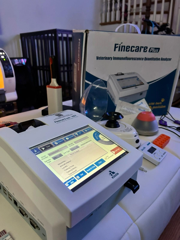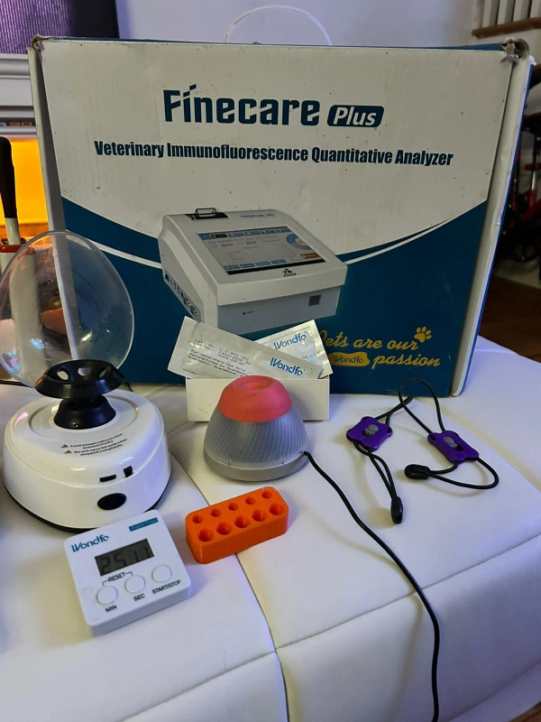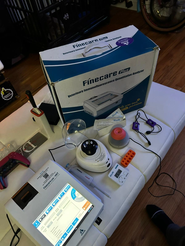 Selling a Finecare Plus Veterinary Immunofluorescence Quantitative Analyzer. Comes with the box and several components as pictured. Great for veterinary use!