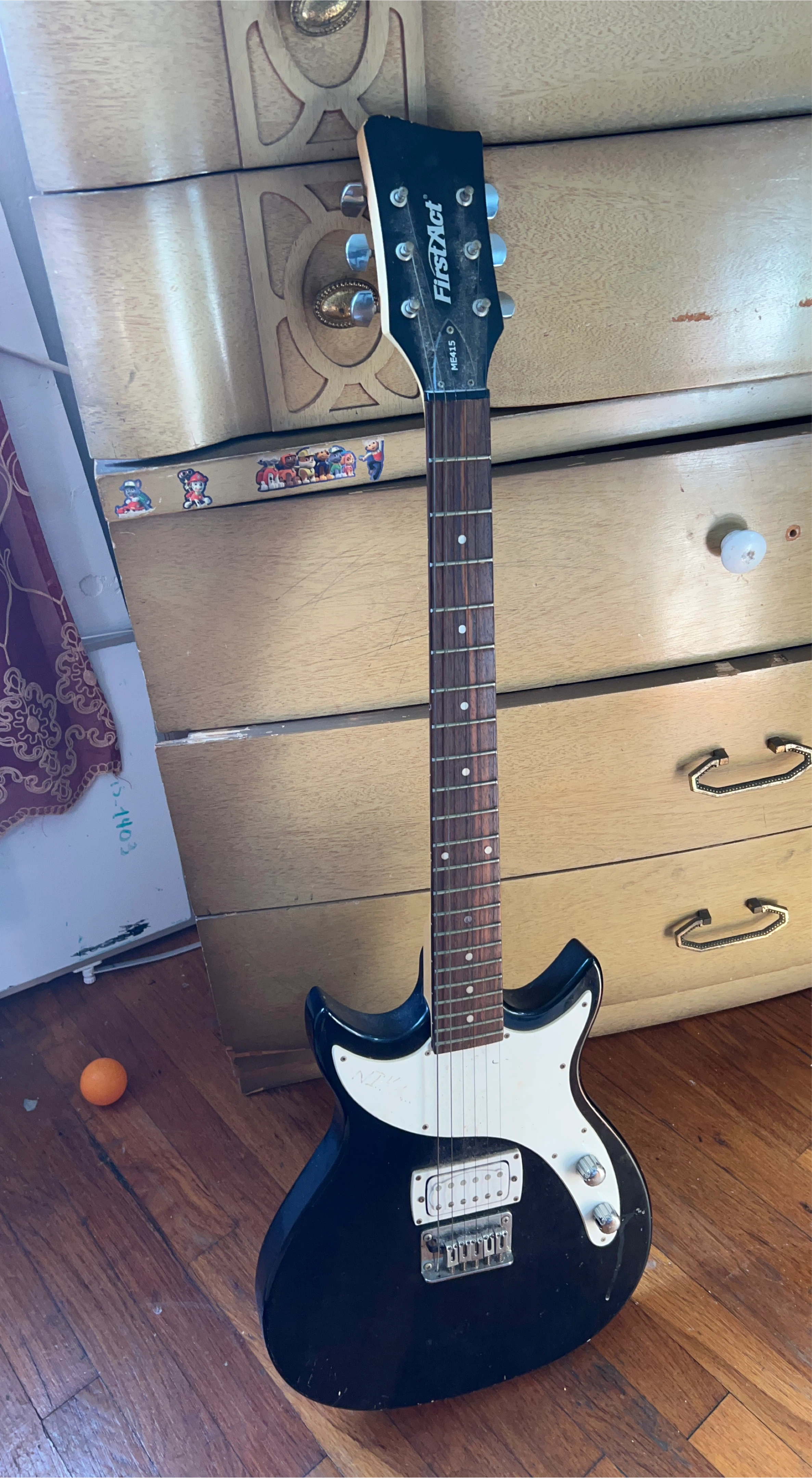 60Selling a black First Act electric guitar, model ME415. It's in good condition and ready for a new home. Perfect for beginners or anyone looking for a fun instrument to play!
