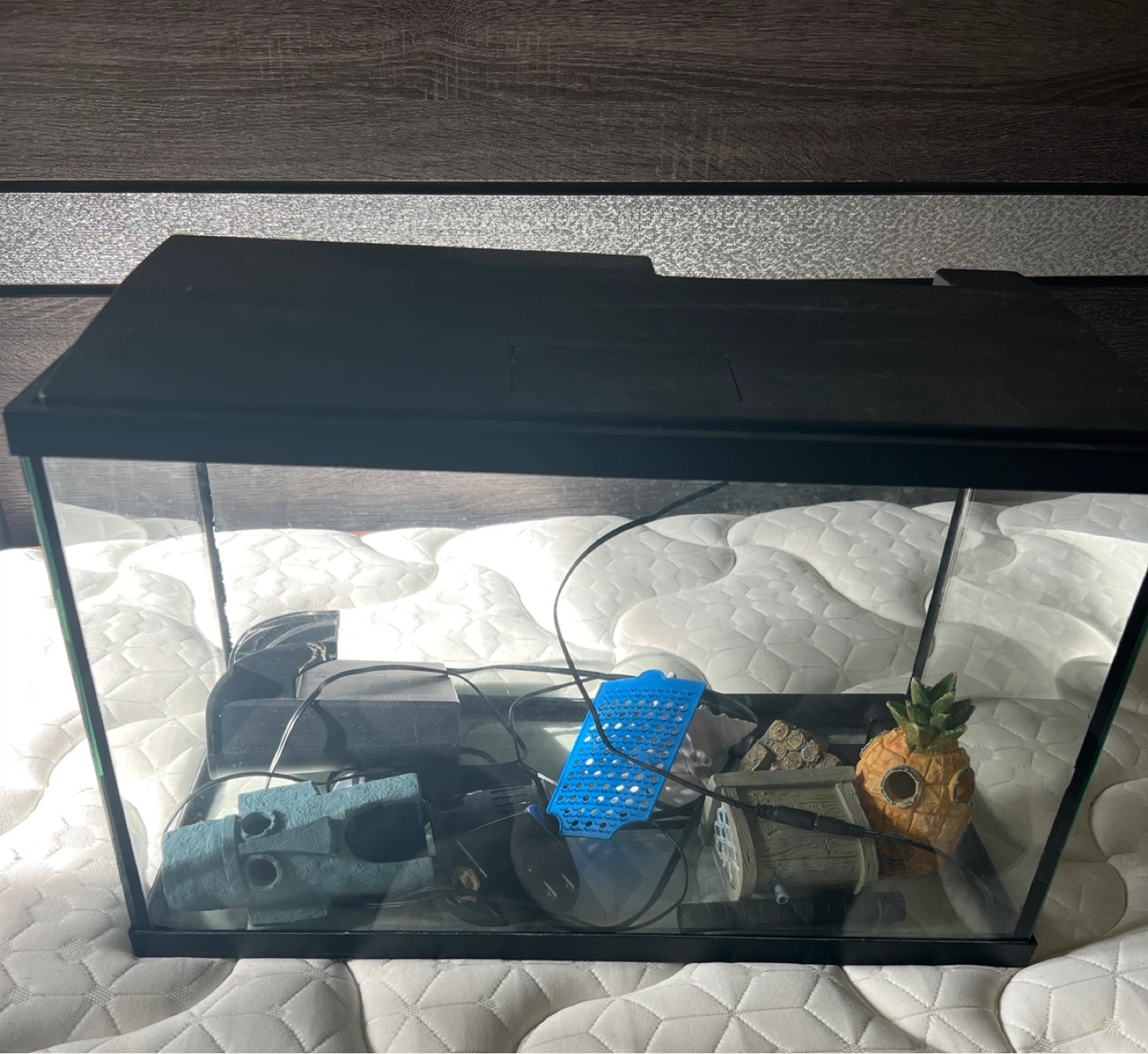 65Selling a used fish tank that comes with some accessories. It does not includes a filter, a blue net, and some decorative pieces for the inside of the tank. Great for someone starting out with fish keeping!