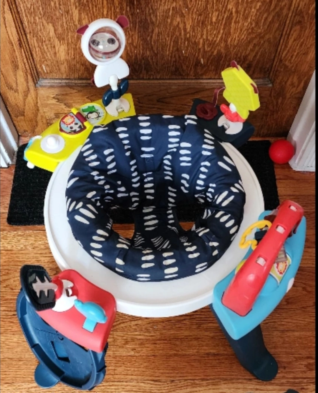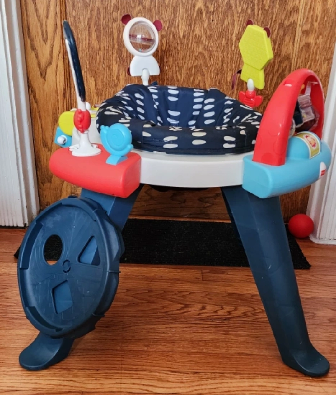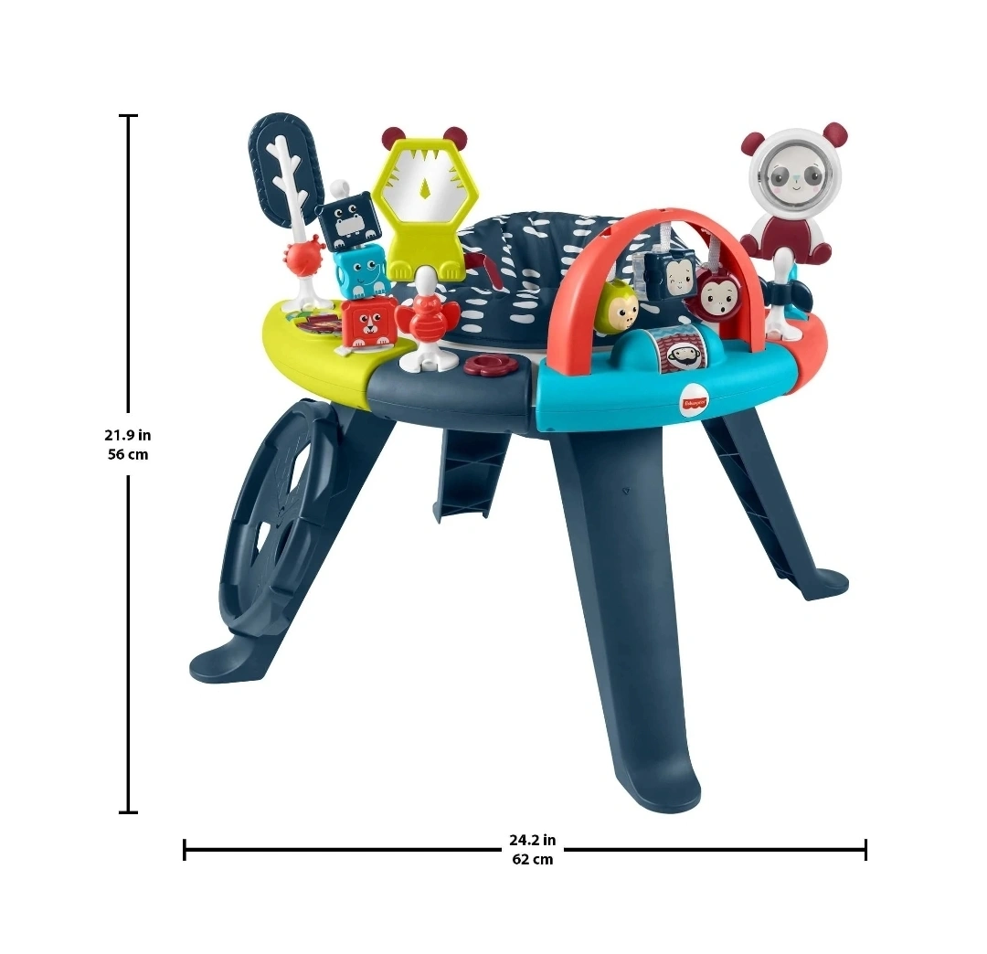 Selling a gently used Fisher Price 3-in-1 Spin & Sort Infant Seat Activity Center & Toddler Play Table! It's in great condition and ready for a new little one to enjoy. Price negotiable. Spinning seat with movable activity toys. Removable legs for storing. Removable seat pad for washing. Activity pods can be removed to be attached to sorter to play on the floor. Color : Navy with white dashes This activity center features: - 21.9 in (56 cm) height - 24.2 in (62 cm) width