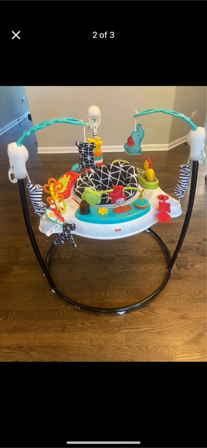 Fisher-Price Baby Bouncer Pink Petals Jumperoo Musical Activity Center. Plays music and lights up. Porch pickup New Lenox near Cedar and Delaney. $80 OBO. Retails $169.99 on Amazon.