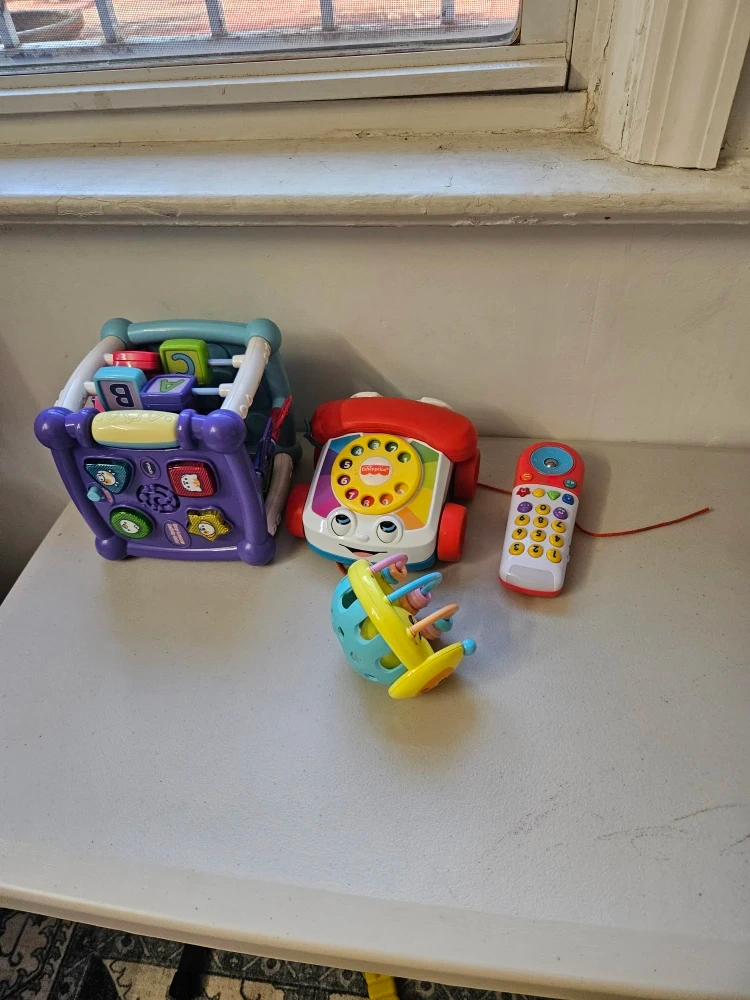 92Selling a bundle of Fisher-Price baby toys! Includes a cube activity center, a Chatter Telephone, a toy phone, and a rattle toy. These toys are perfect for babies and toddlers.