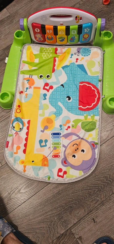 Selling a gently used Fisher-Price Deluxe Kick & Play Piano Gym! It features a colorful mat with engaging animal designs and a piano that plays music when your baby kicks or touches it. Perfect for tummy time and early development!