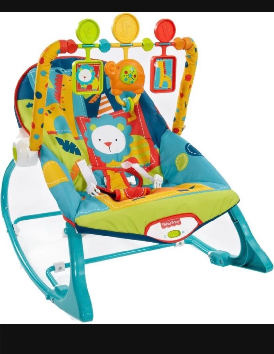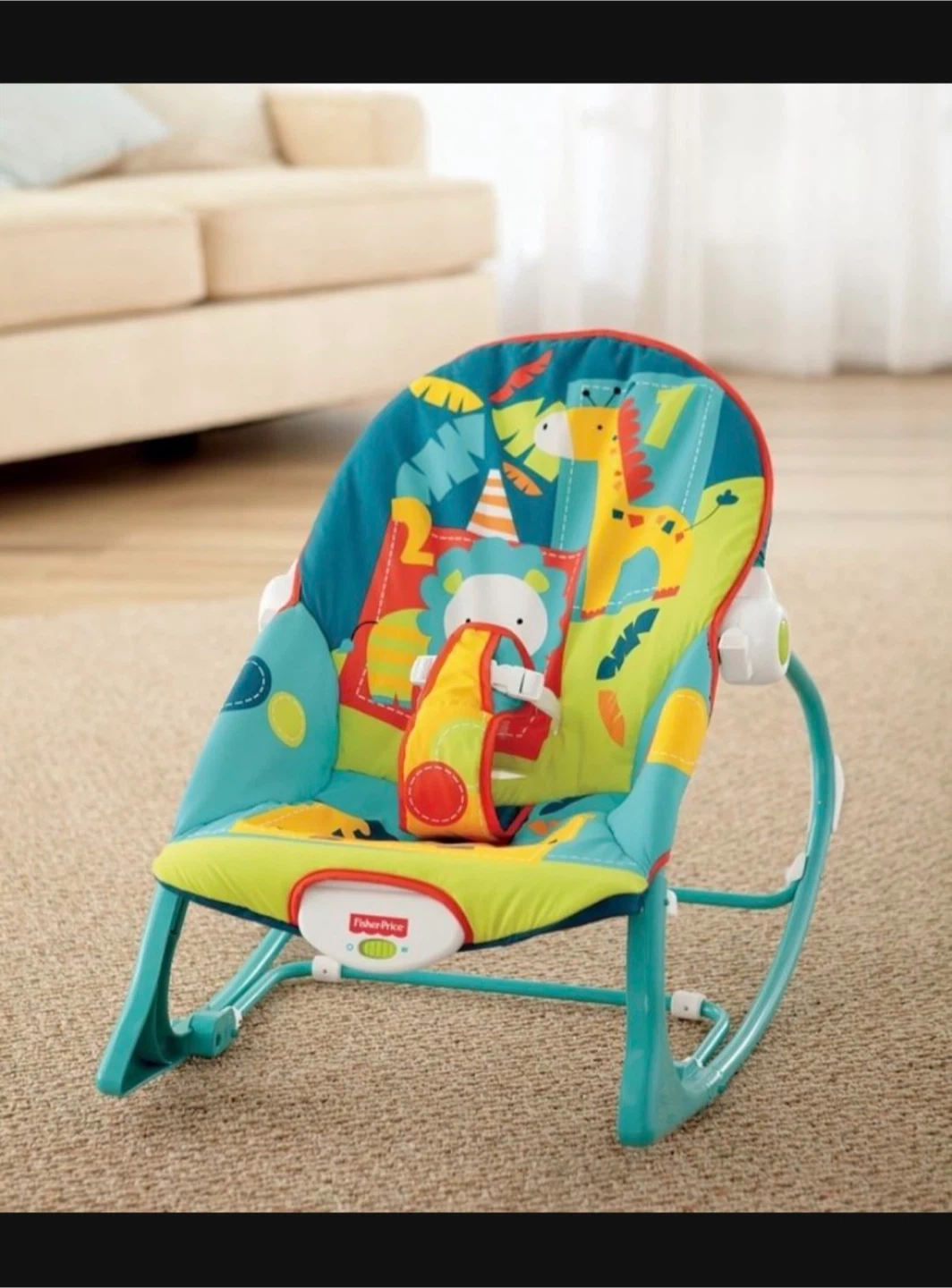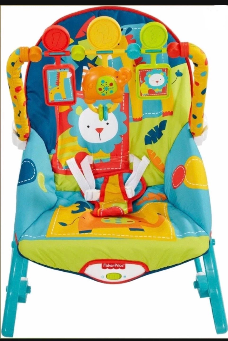 10Selling a Fisher-Price baby bouncer in great condition! It's perfect for keeping your little one entertained and comfortable. The bouncer features a colorful design with fun animal characters. Recommended age range is for newborns and up. It's lightweight and easy to move around the house