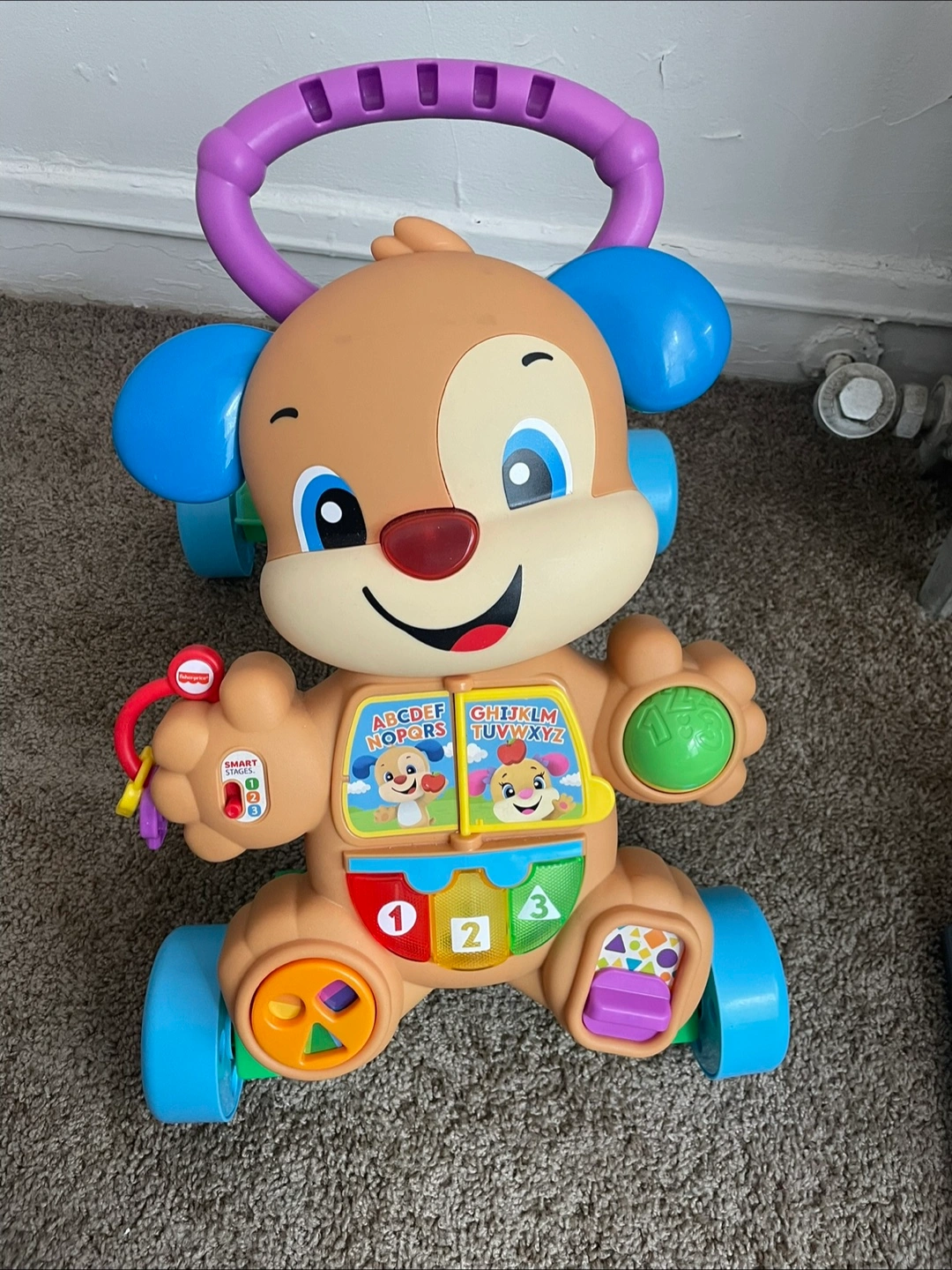 This Fisher-Price Learn with Me Walker is perfect for little ones just starting to explore! It's in great condition and ready for a new home. The walker helps encourage early learning with fun activities and sounds