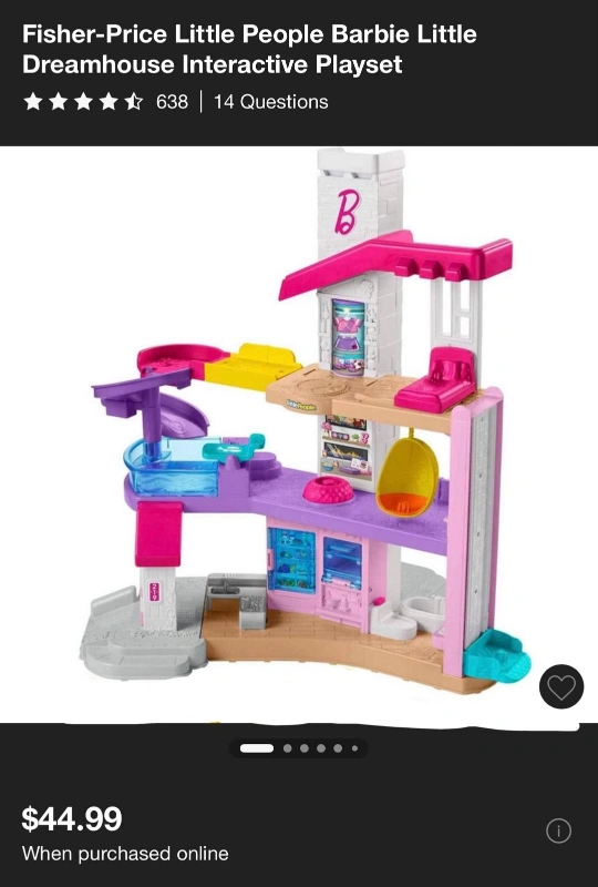 Selling a Fisher-Price Little People Barbie Little Dreamhouse Interactive Playset! It's in great condition and ready for a new home. This interactive playset is perfect for little ones who love Barbie and imaginative play