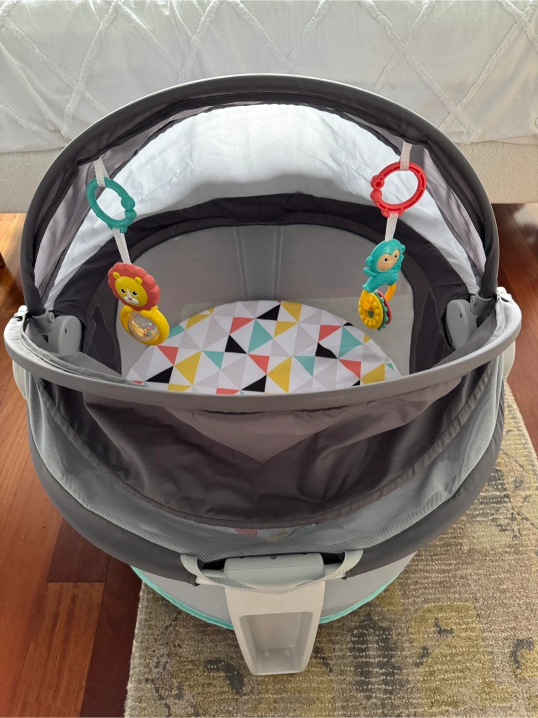 Selling a Fisher-Price On-the-Go Baby Dome! It's in great condition and perfect for travel or just moving around the house. The dome features a comfortable sleeping area for your little one and includes toys to keep them entertained. Comes with the owners manual.