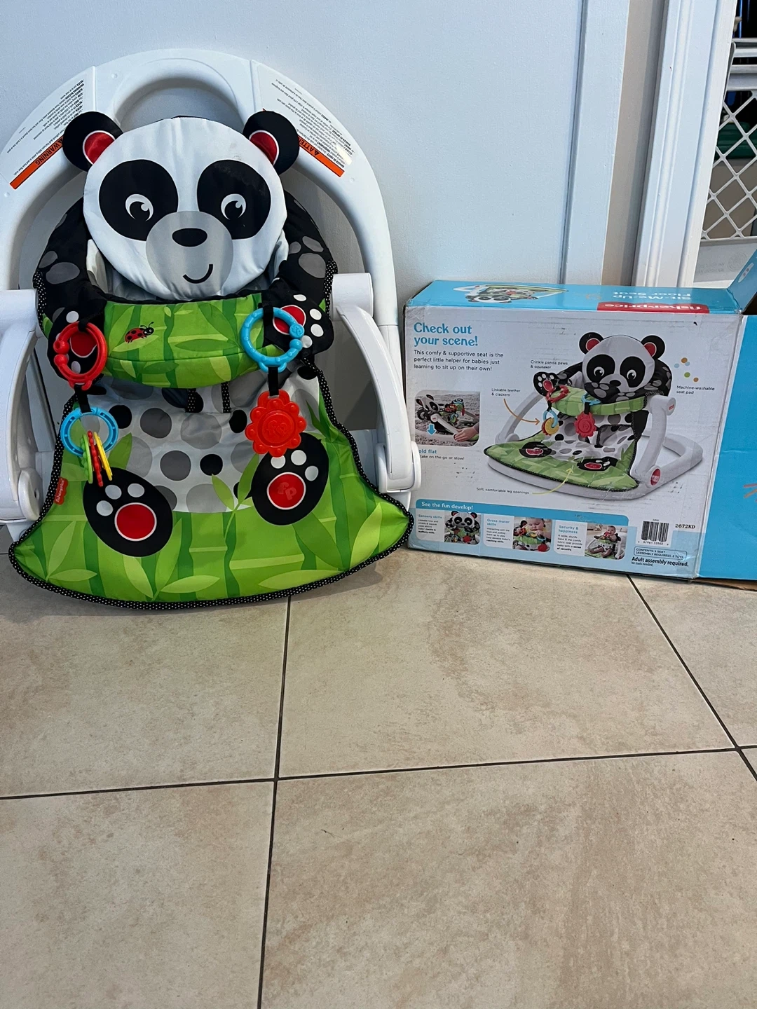 25Check out this Fisher-Price Panda Sit-Me-Up Floor Seat! This comfy and supportive seat is the perfect little helper for babies just learning to sit up on their own. It also folds flat to take on the go! Holds up to 25 lbs. used exactly once