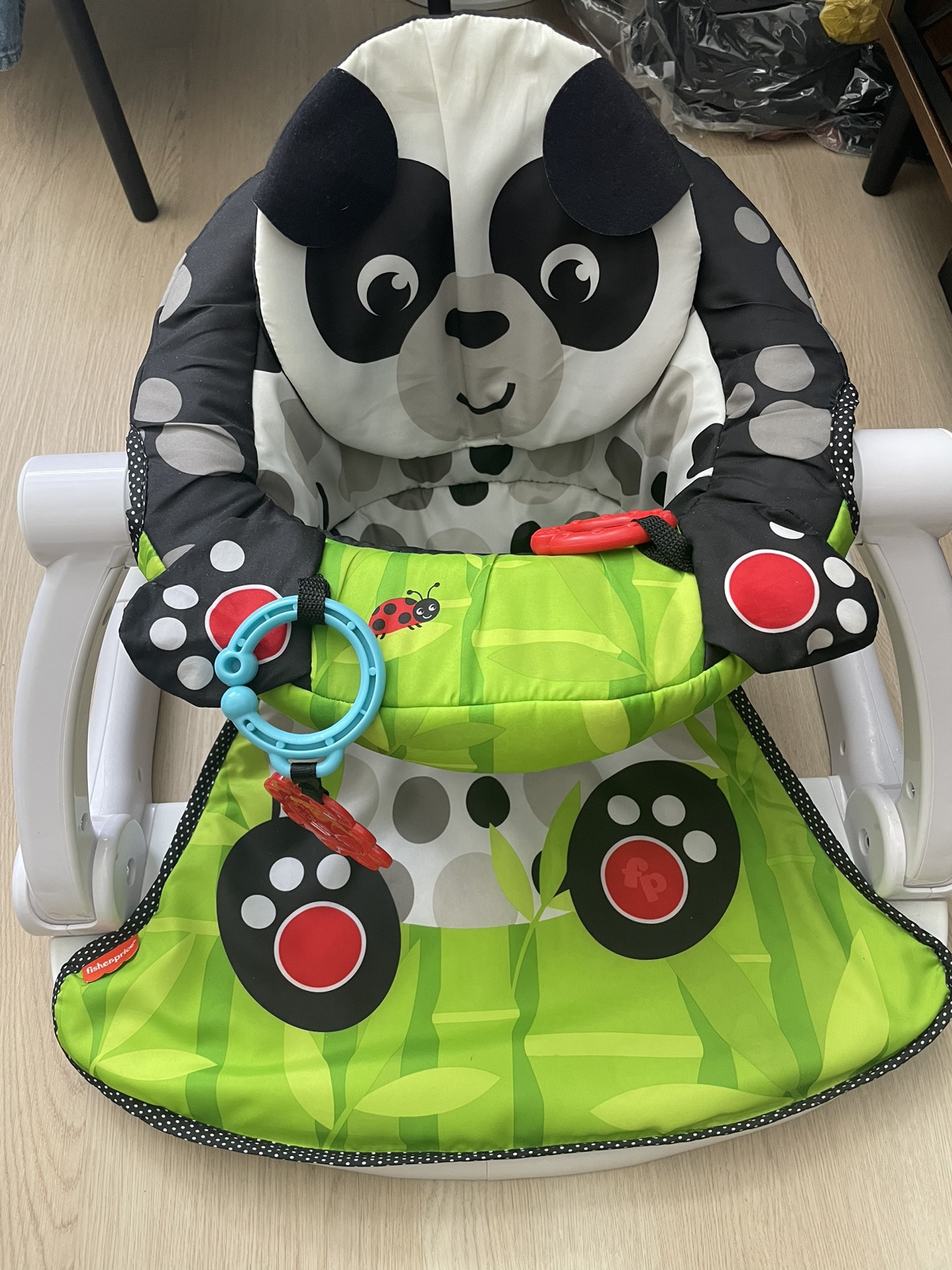 13This friendly panda can't wait to help your baby learn to sit up! The Fisher-Price Sit-Me-Up Floor Seat's soft fabrics and wide base help support your little one comfortably as you sit them up to interact with the world around. Each of the panda's paws have a fun sensory surprise for your baby to discover. And the best part? It folds flatmaking it easy to store or take with you on the go. Your baby will love playing with the linkable toys, and you'll love how easy it is to cleanjust remove the seat pad and pop it in the washing machine. Max. weight 25 lb (11,3 kg). Use only with a child who is able to hold their head up unassisted and who is not able to climb out or walk.