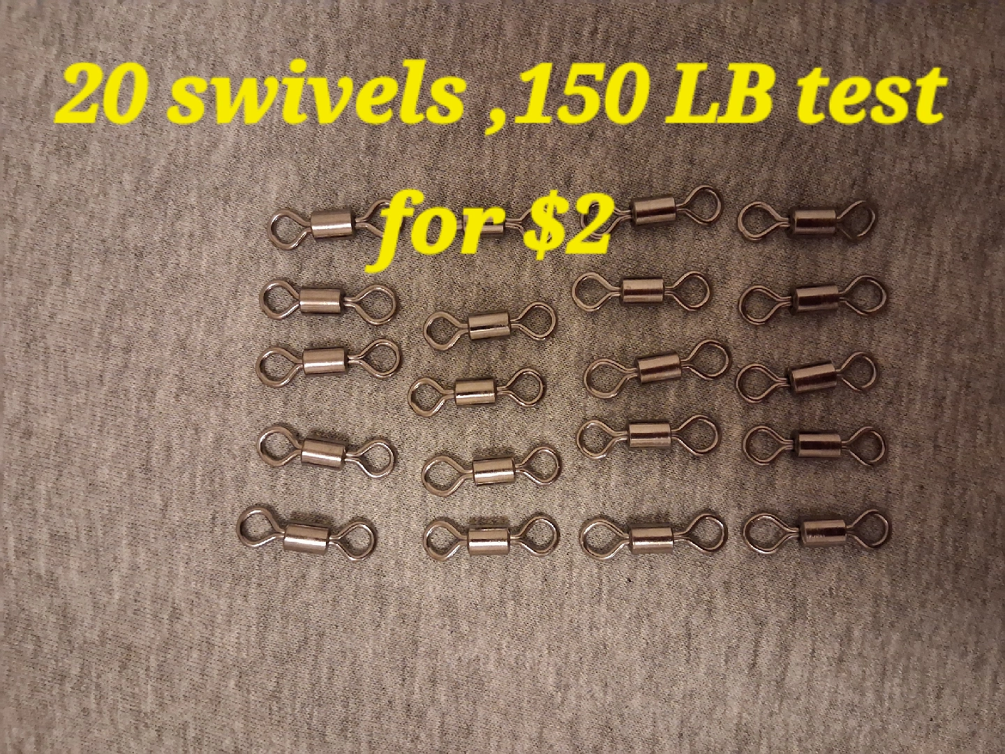 Selling a collection of fishing swivels and sliders. There are several types, including: - 150 LB test swivels - 120 LB test swivels - Fishfinder sliders All are in good condition and ready for your next fishing trip for $2. any interest. 347-285-6952, jp