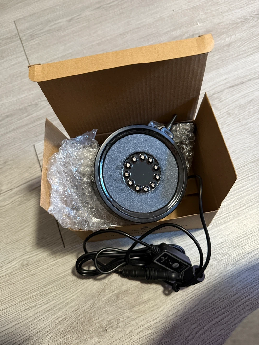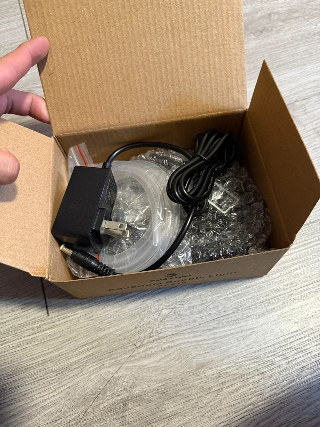5Selling a brand new fishkeeper Aquarium Bubble Light, model FK019! It comes complete with the original box and includes the air tube and power cord. The light is designed to enhance your aquarium with beautiful bubbles and light. Dimensions are approximately 4.13 inches in diameter, with an 81.6-inch air tube and a 106.32-inch power cord. Perfect for adding a unique touch to your fish tank!