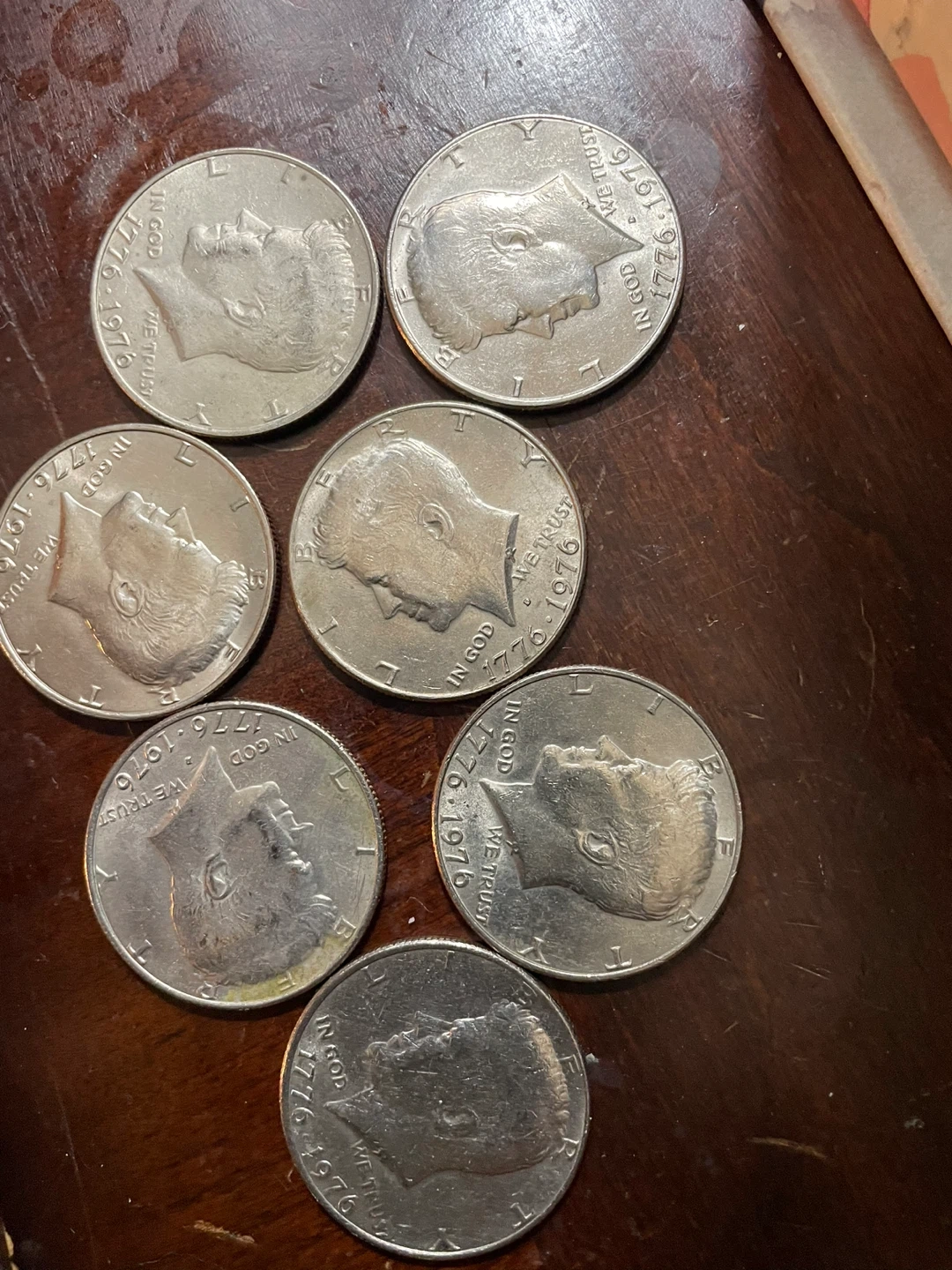 This listing includes seven 1976 Kennedy half dollars. All coins are dated 1776-1976. These are US currency half dollars.