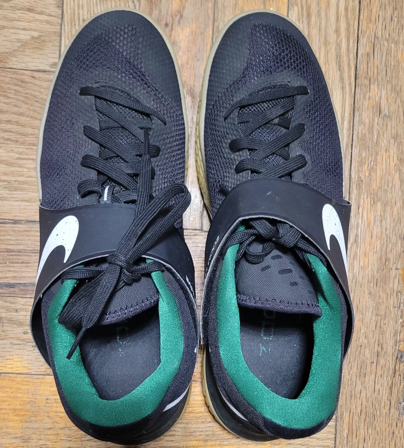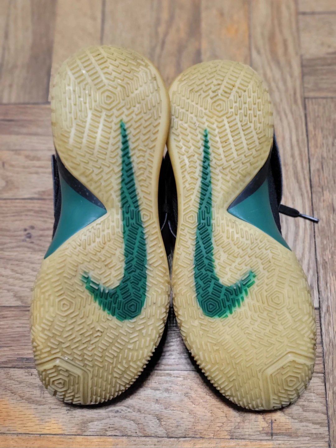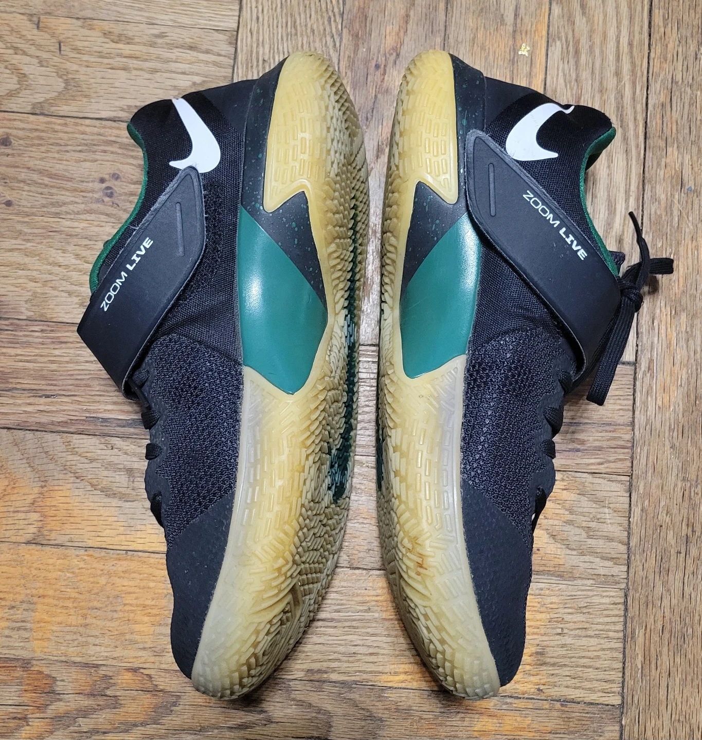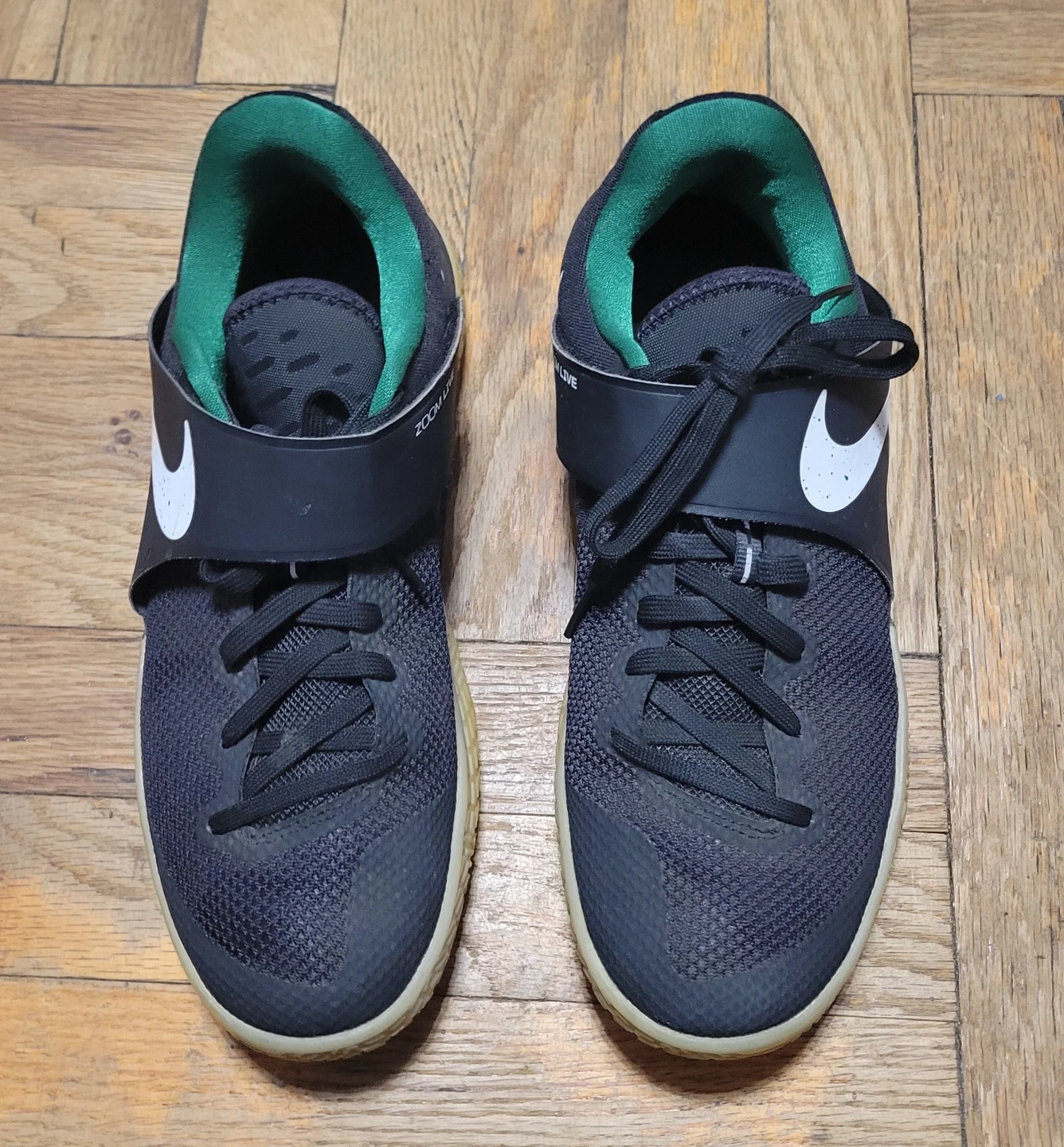 Nike Zoom Live basketball shoes in black and green. Size 10 US (9 UK, 44 EUR, 28 cm).