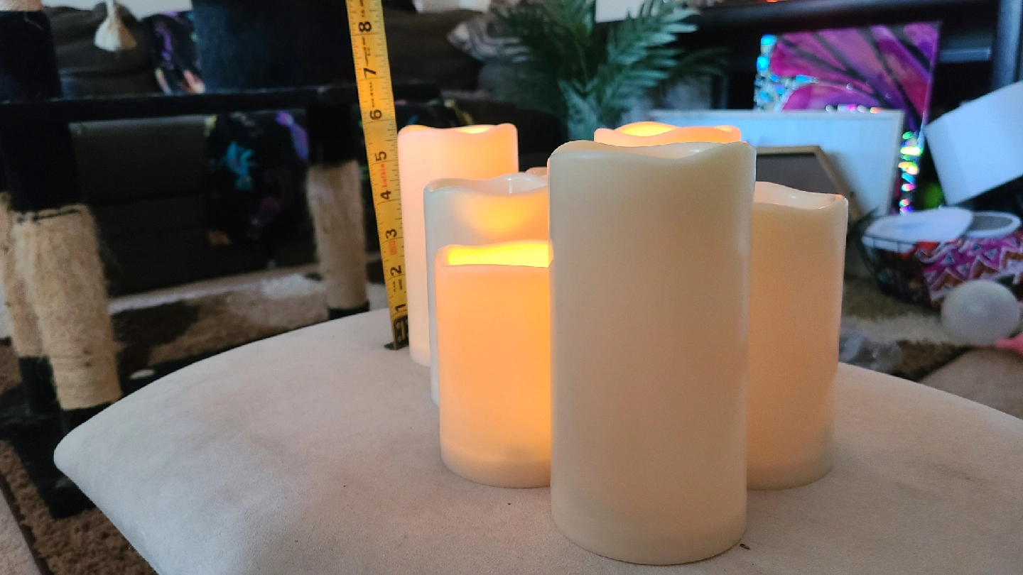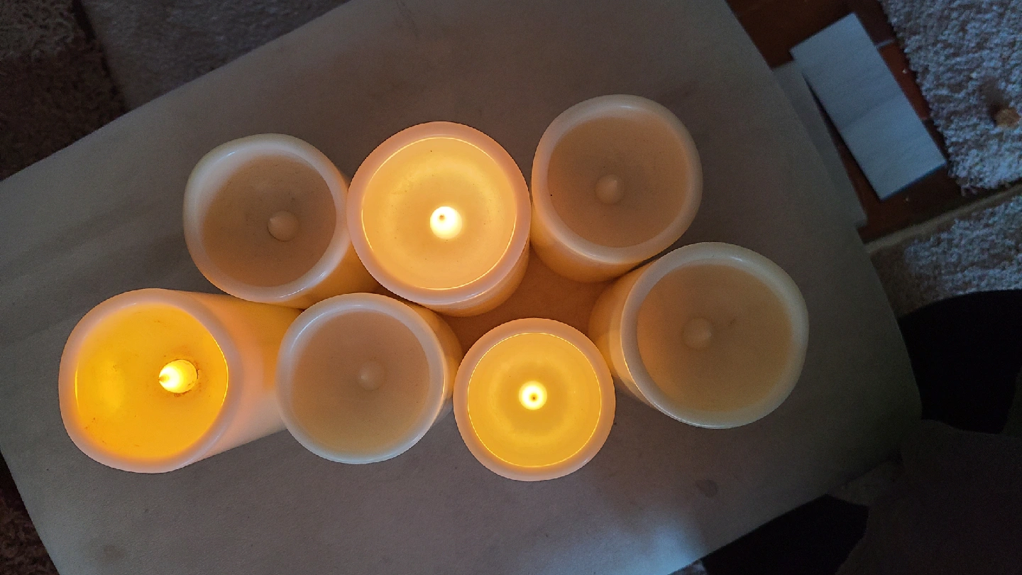 Selling a set of 7 flameless LED candles! They are battery operated and give a warm, inviting glow. Great for creating a cozy atmosphere without the worry of real flames. Perfect for home decor or events.