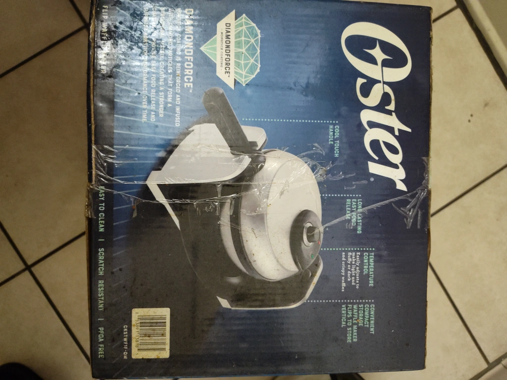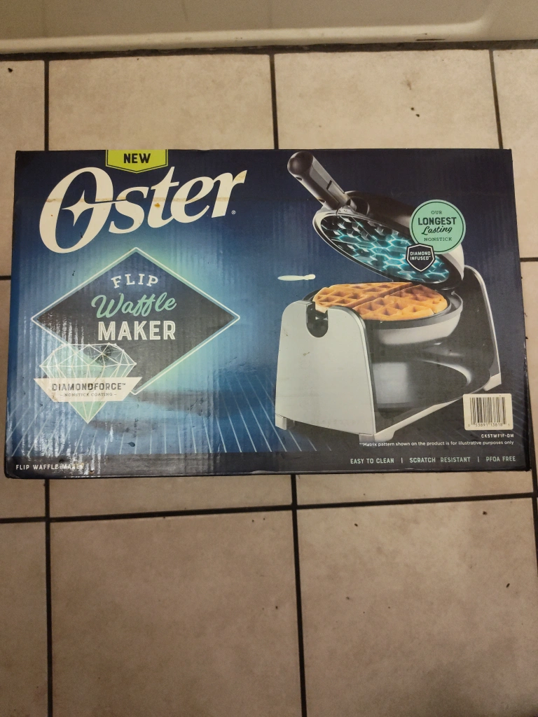 24Selling an Oster DiamondForce Flip Waffle Maker. It has a cool touch handle and is easy to clean. The temperature control easily adjusts to make light and fluffy or dark and crispy waffles. This waffle maker is convenient and compact, and flips to store vertically