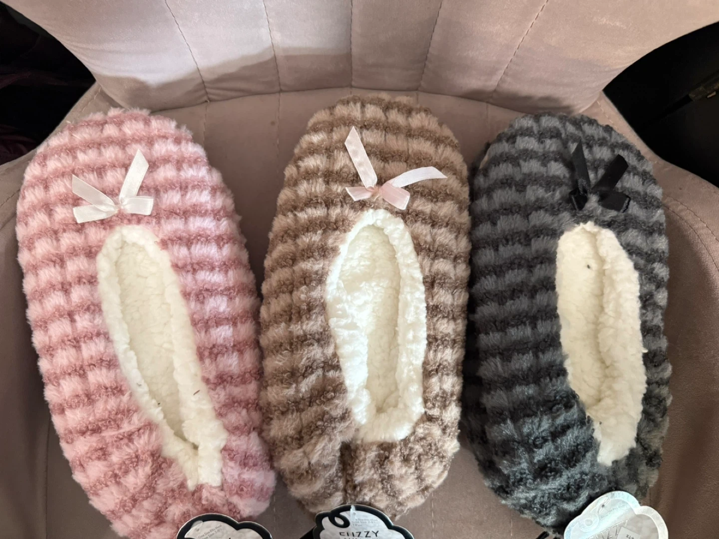 65Selling these super comfy Flizzy Fuzzy slippers! They come in three cute colors: pink, brown, and gray. Perfect for keeping your feet warm and cozy around the house